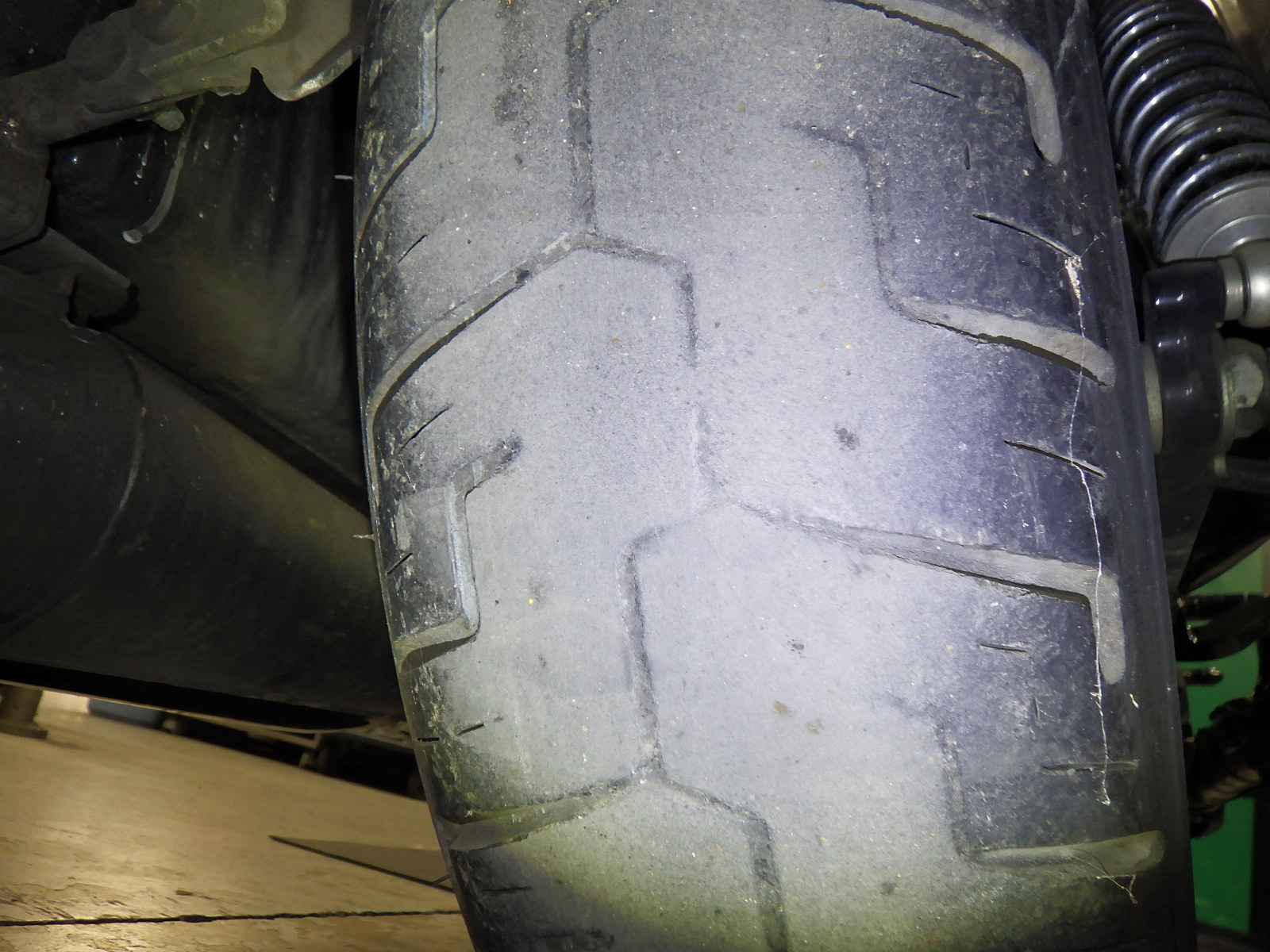 Задняя покрышка: Требуется замена изношенного шины.