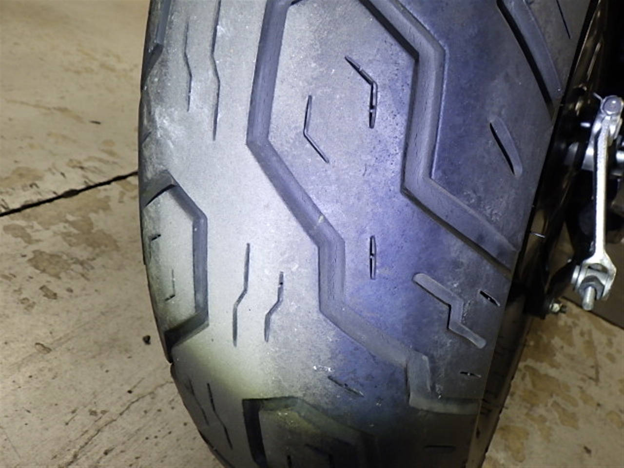 Задняя покрышка: Трещина на шине, требуется замена.