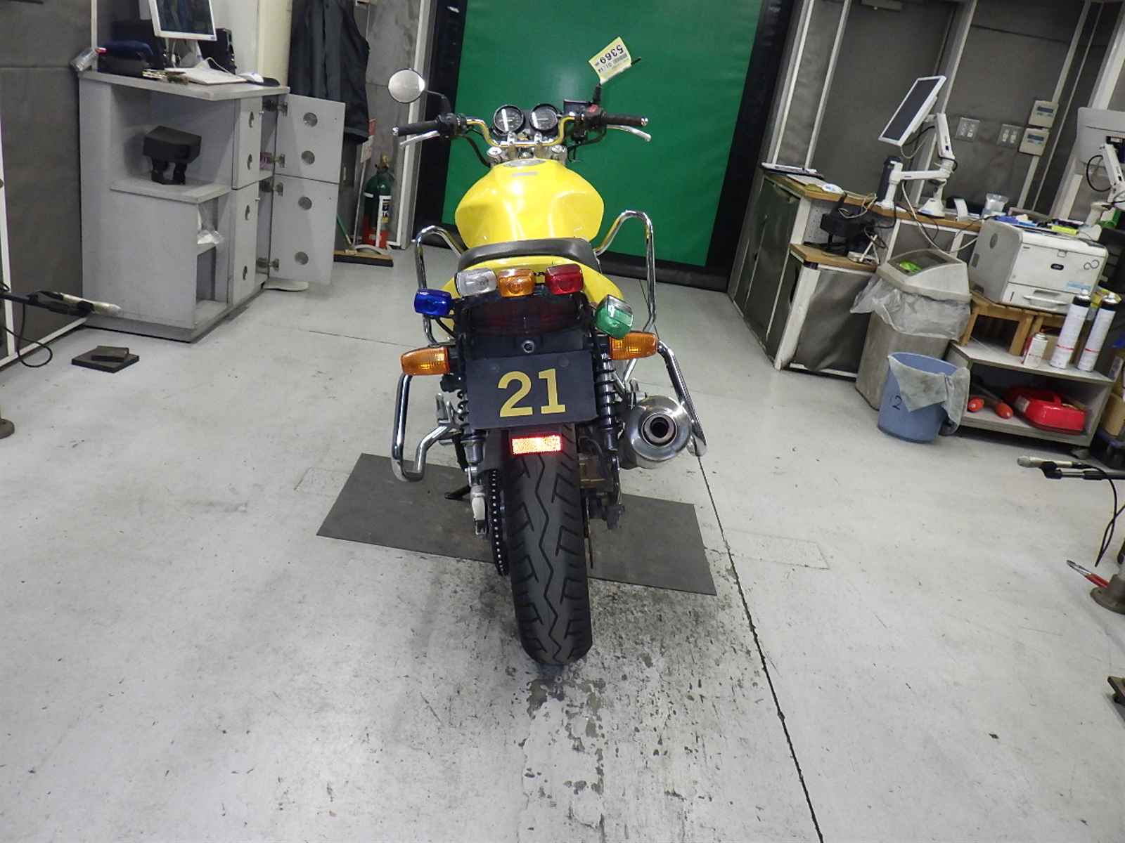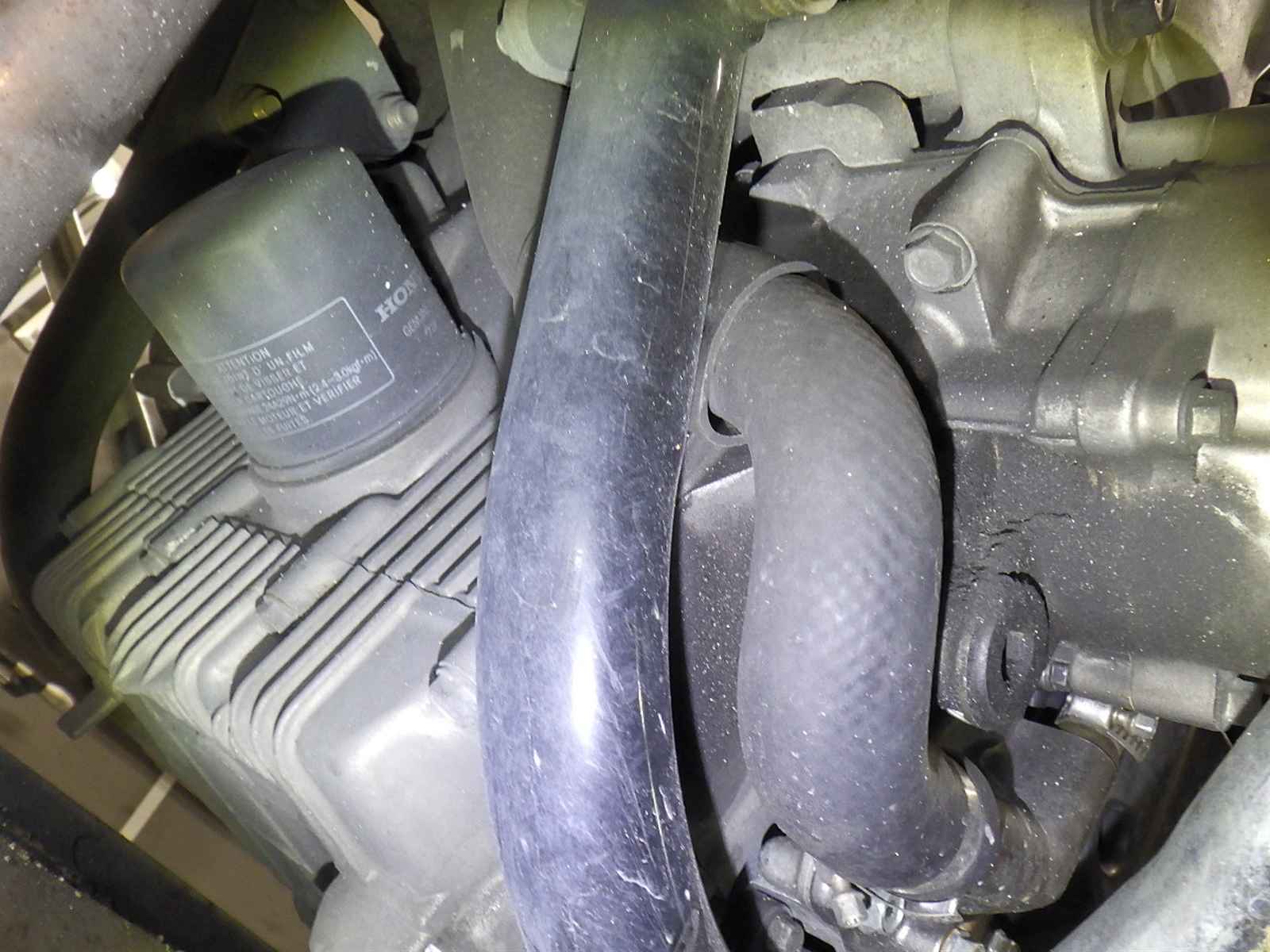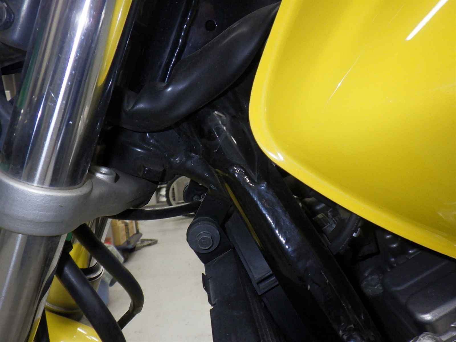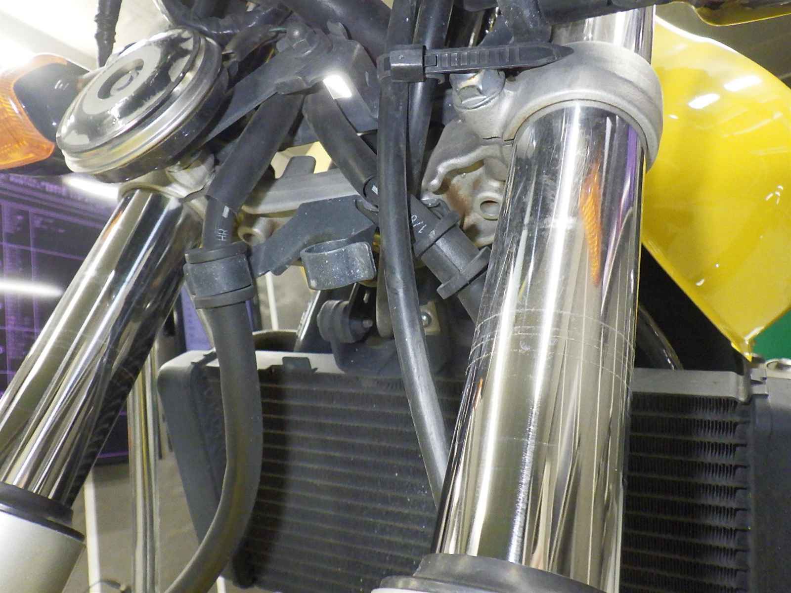 エンジンガードキズ大。教習装備欠損。クーラント漏れ大。前足回りねじれ。各所キズ多、サビ多、変色大。