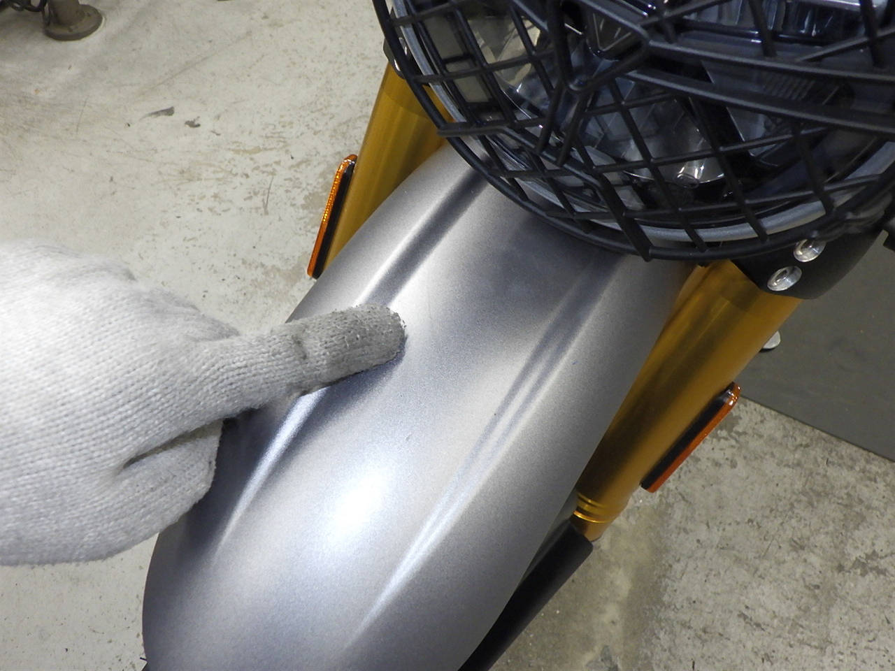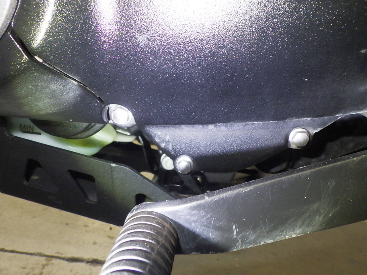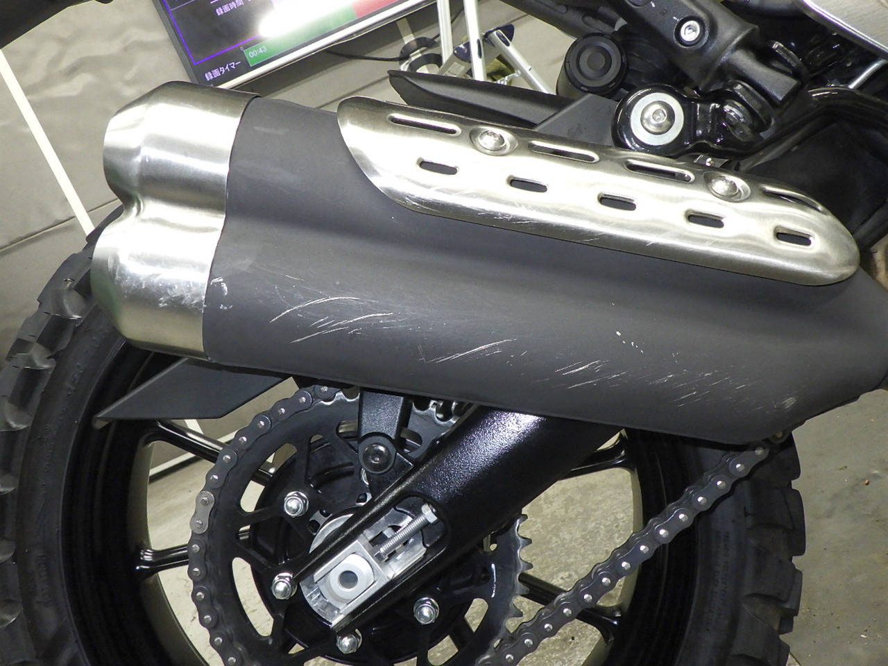 エンジンチェックランプ点灯。エンジンガード付きキズ。