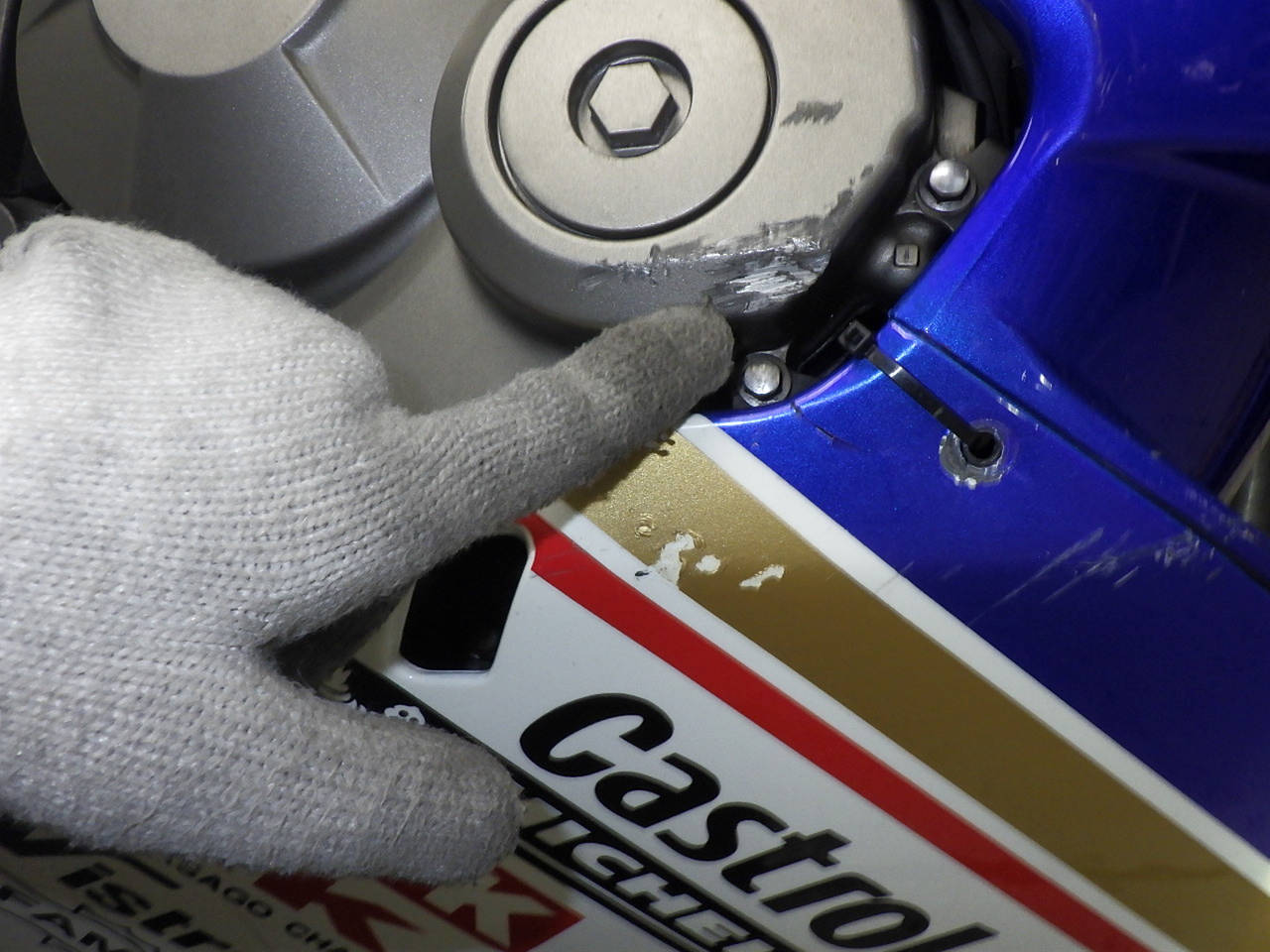 外装社外。カウルズレ。ハザード不良。