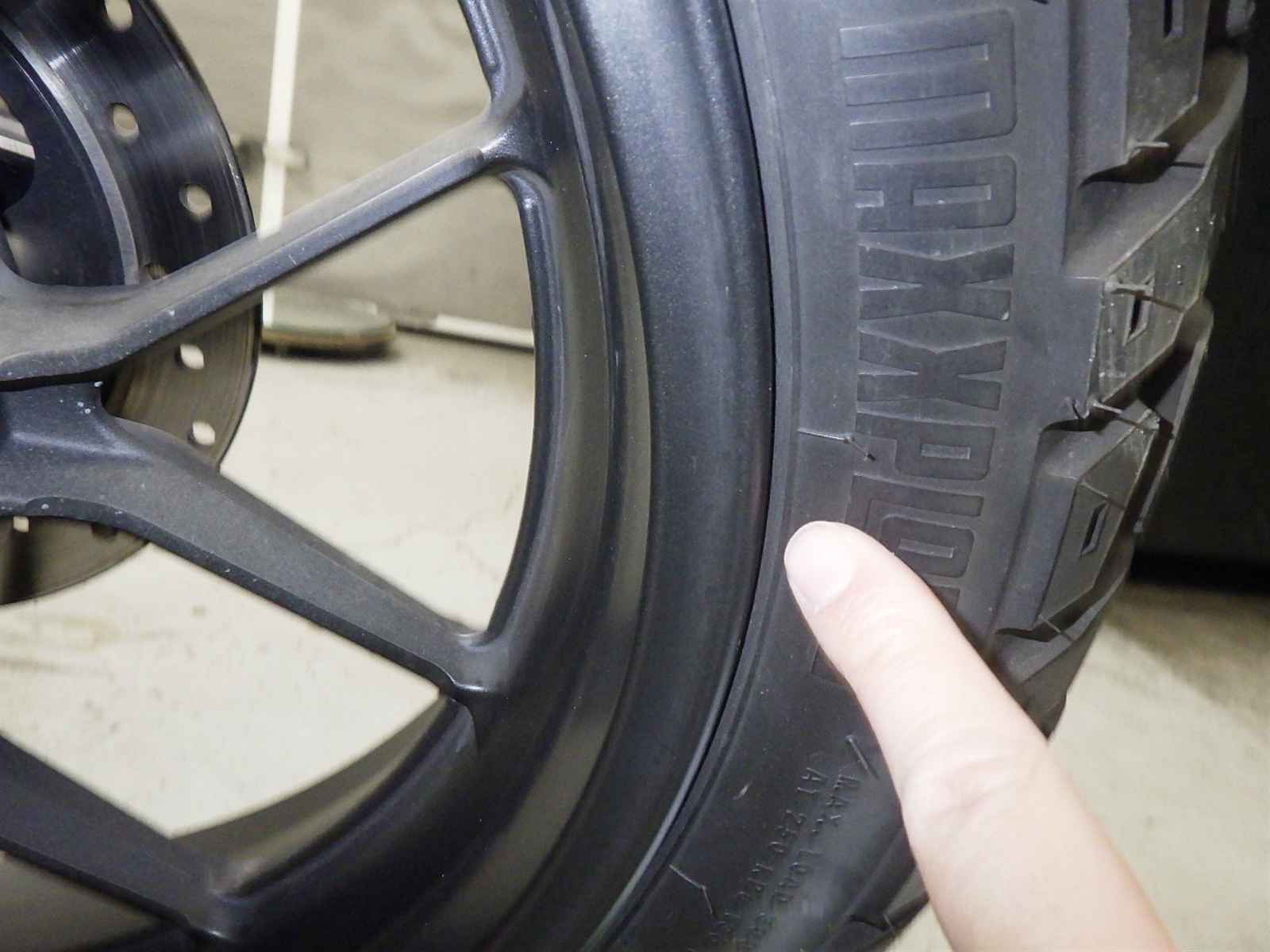 Передняя покрышка: Снижение давления в шине, Трещина