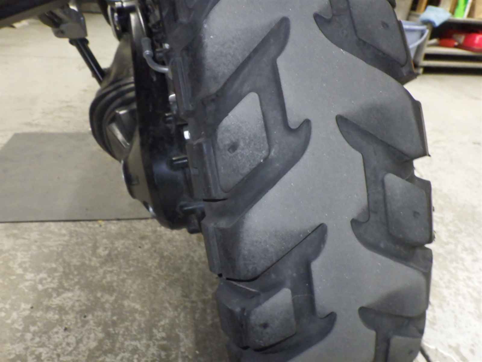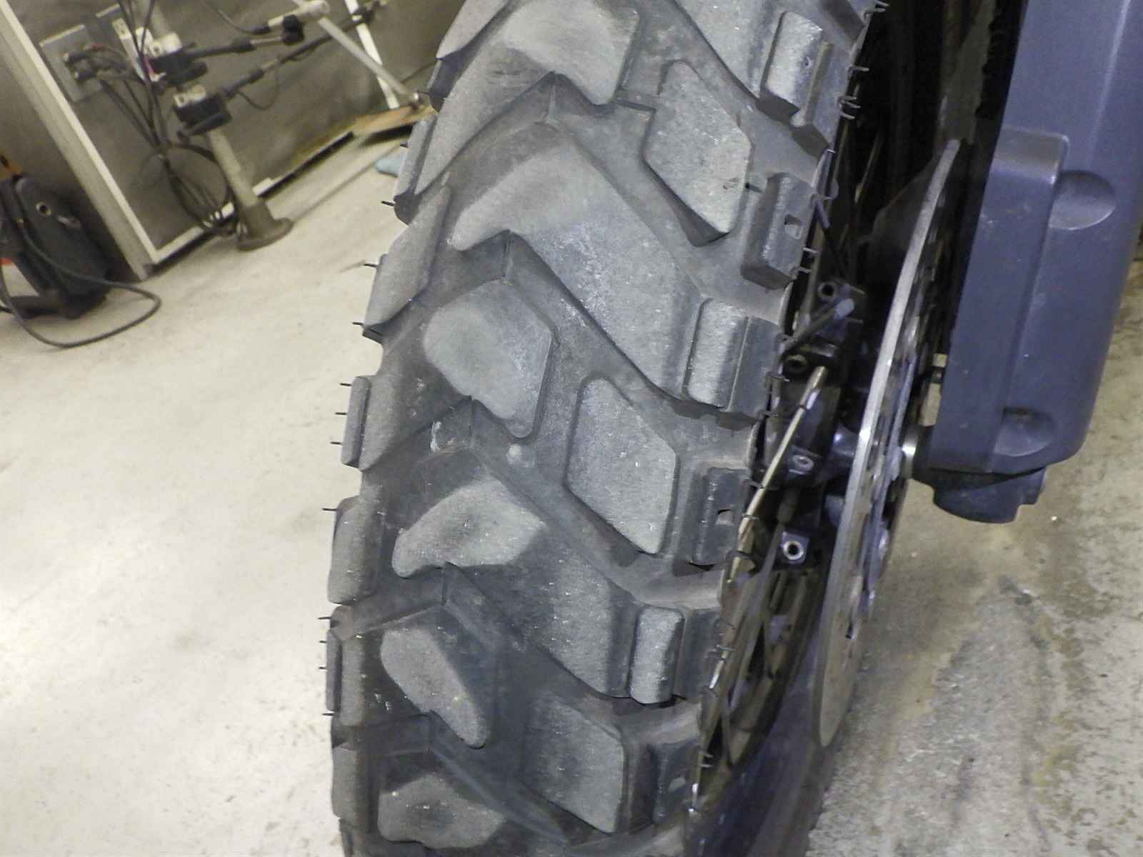 Передняя покрышка: Снижение давления в шине, Трещина требует замены.