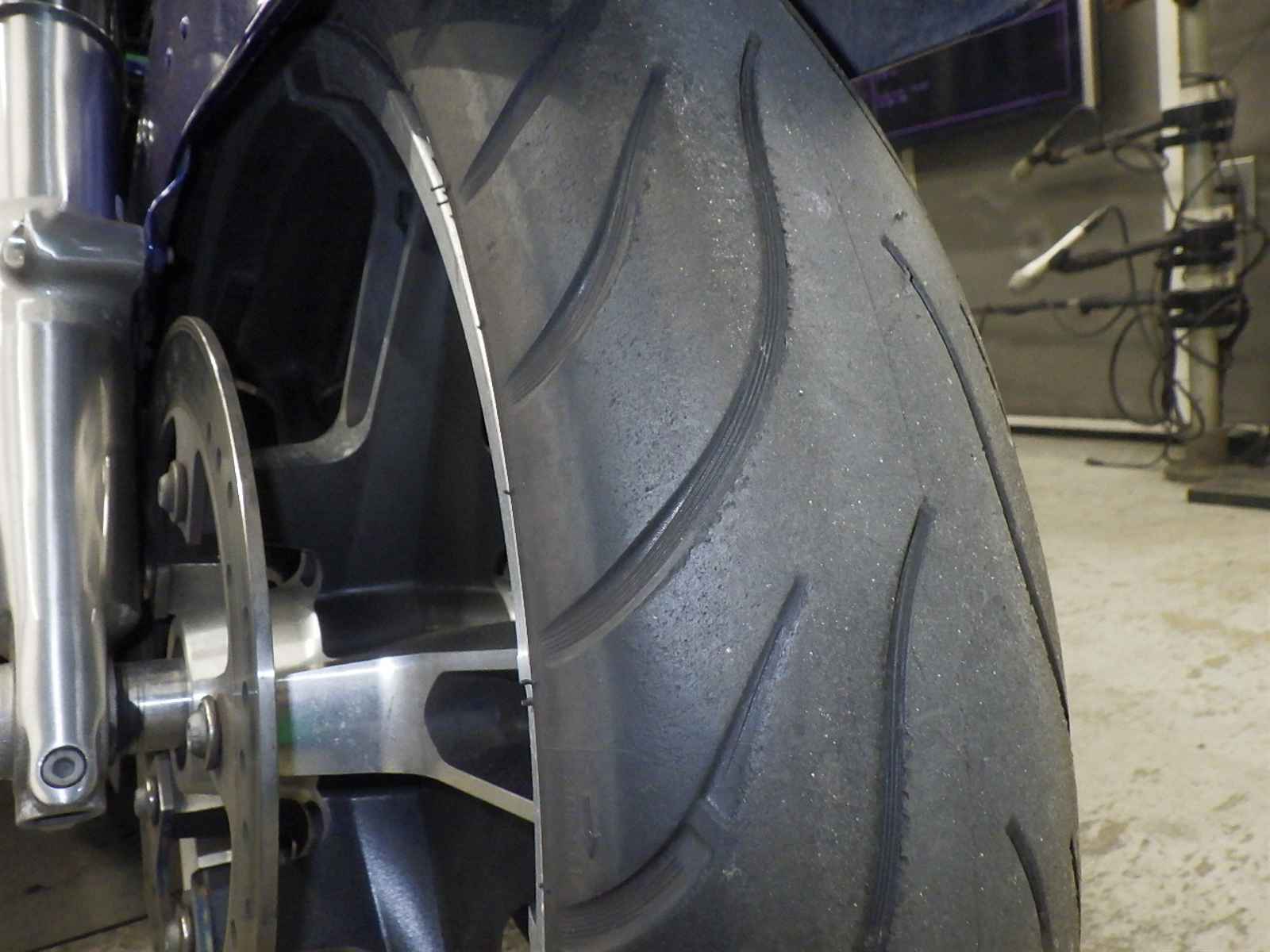 Передняя покрышка: Требуется замена изношенного шины.