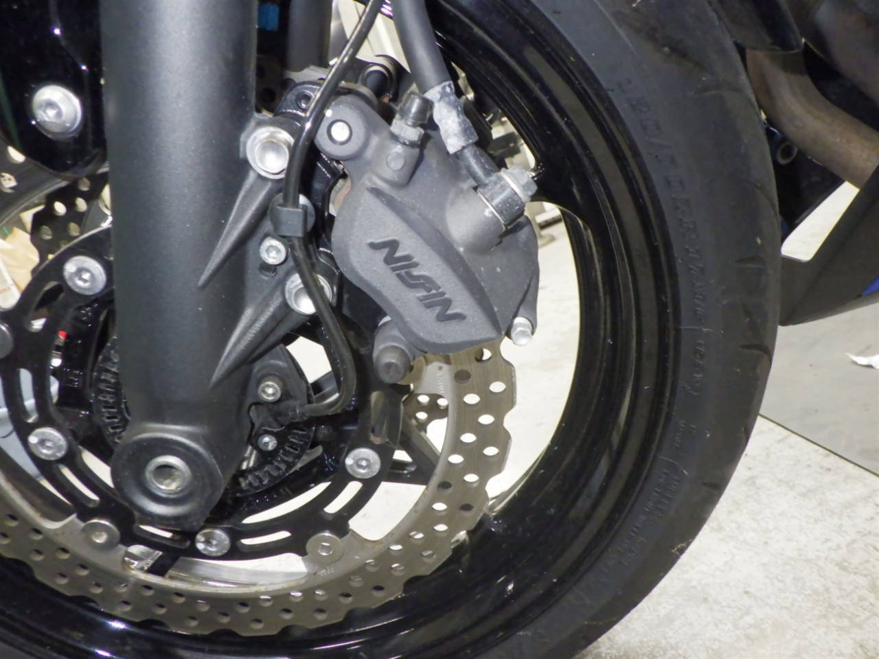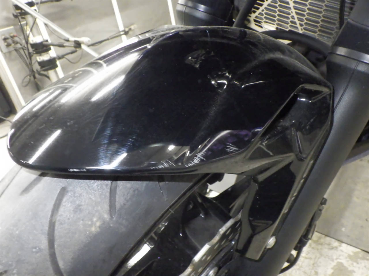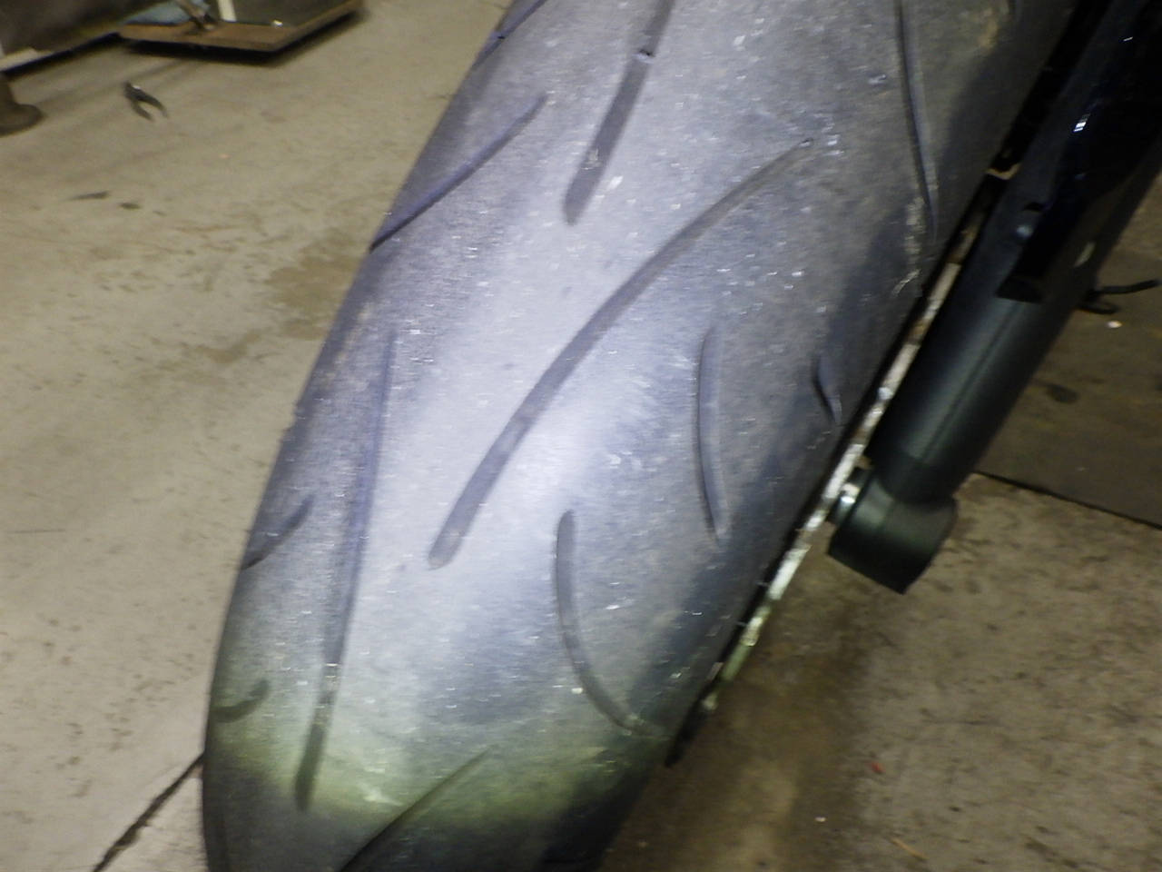Передняя покрышка: Снижение давления в шине, Трещина требует замены.