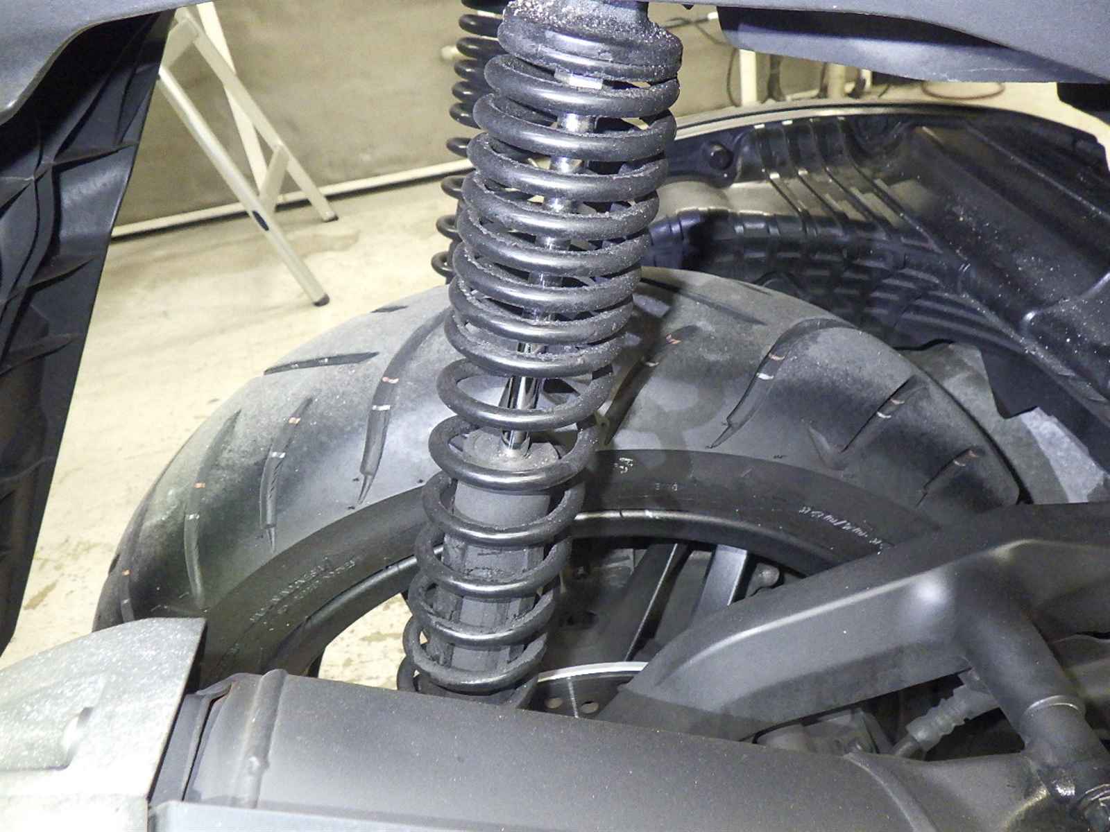 Задняя покрышка: Трещина на шине, требуется замена.