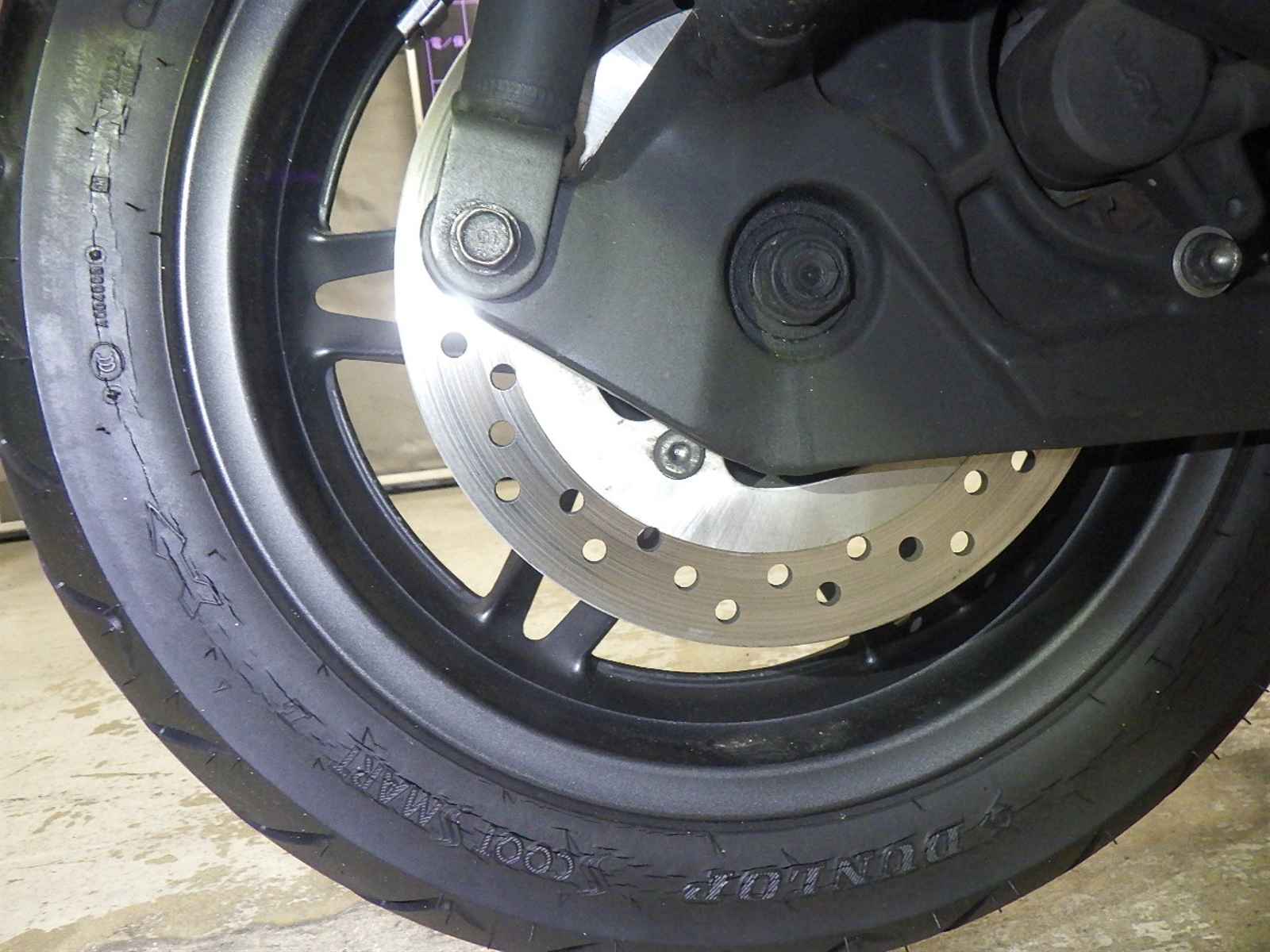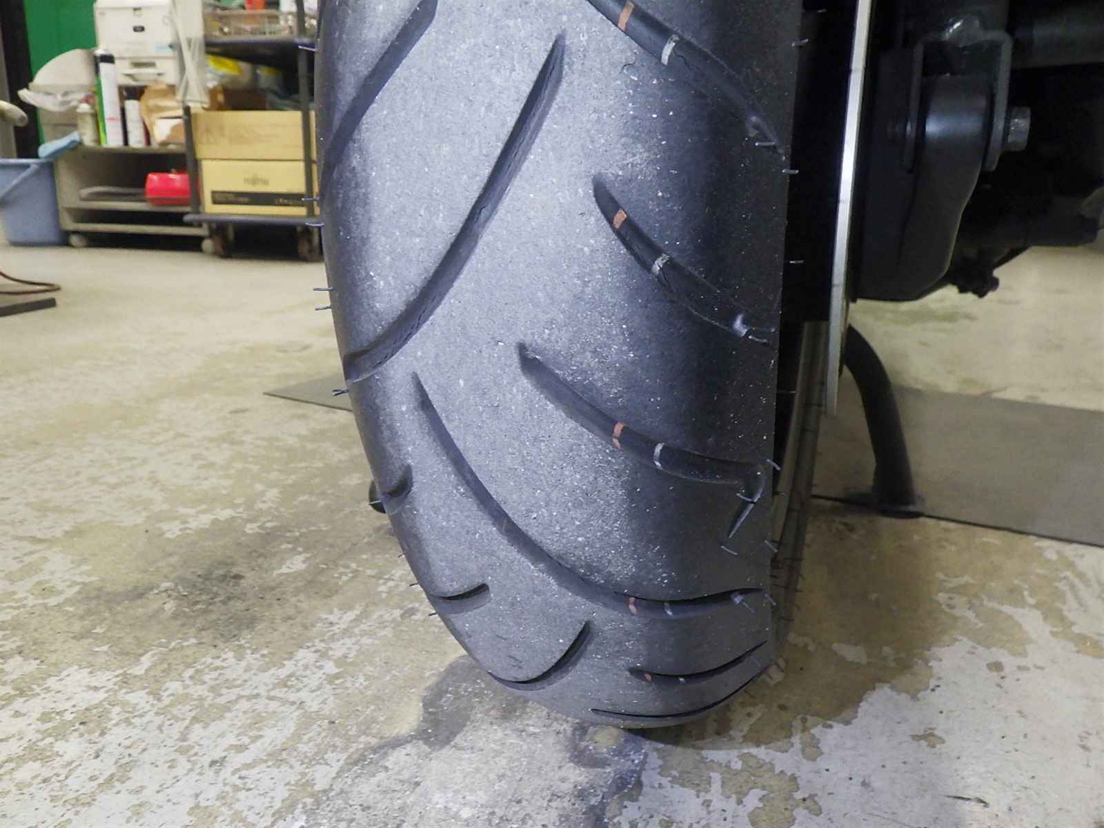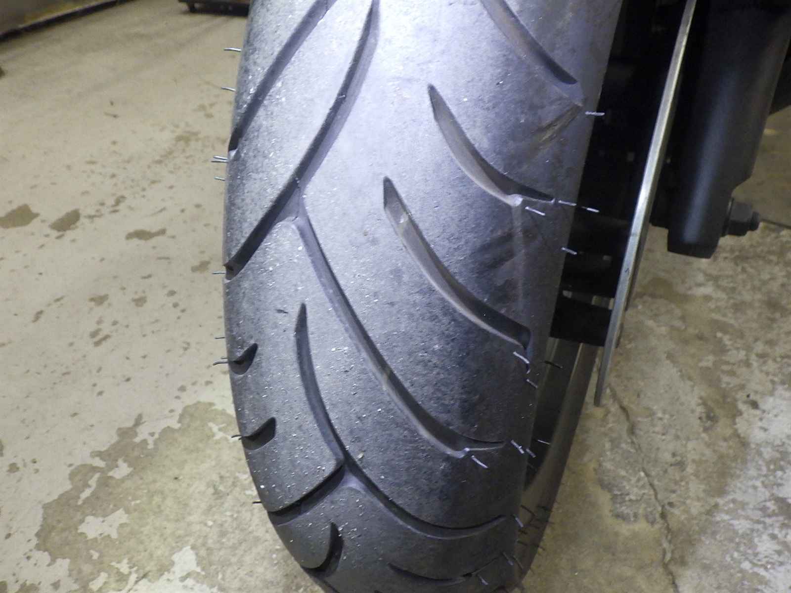 Передняя покрышка: Трещина на шине, требуется замена.
