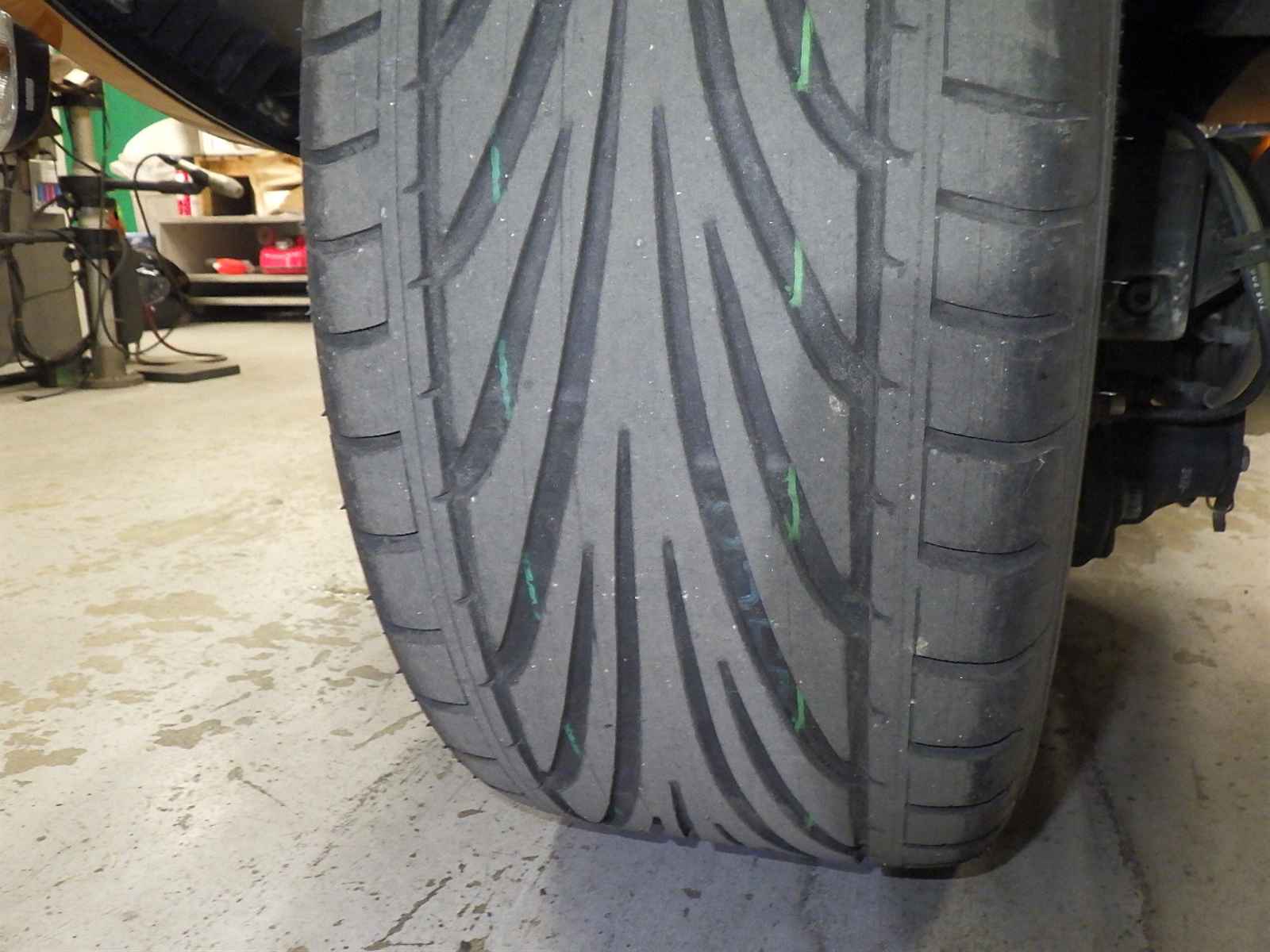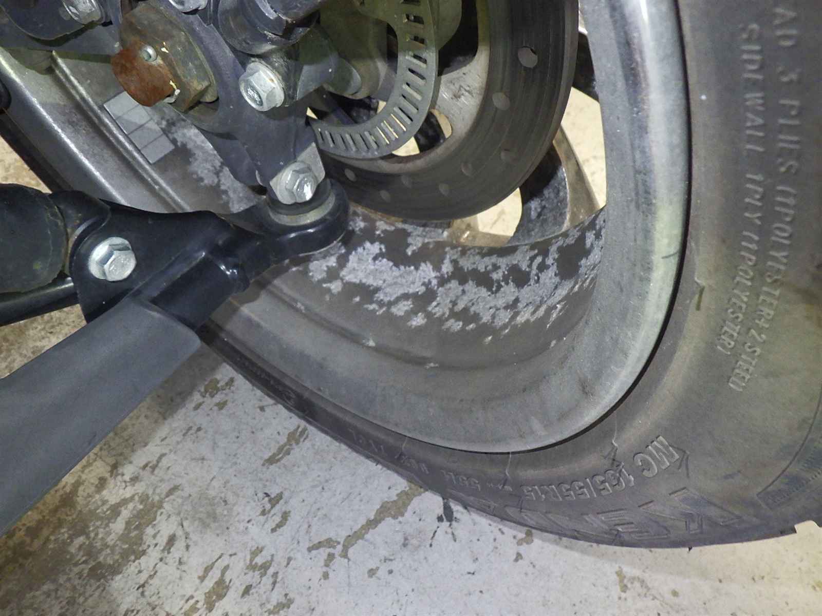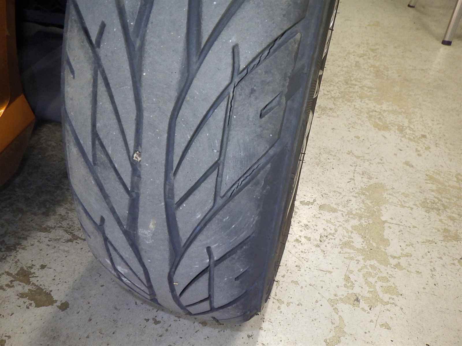 Передняя покрышка: Трещина на шине, требуется замена.