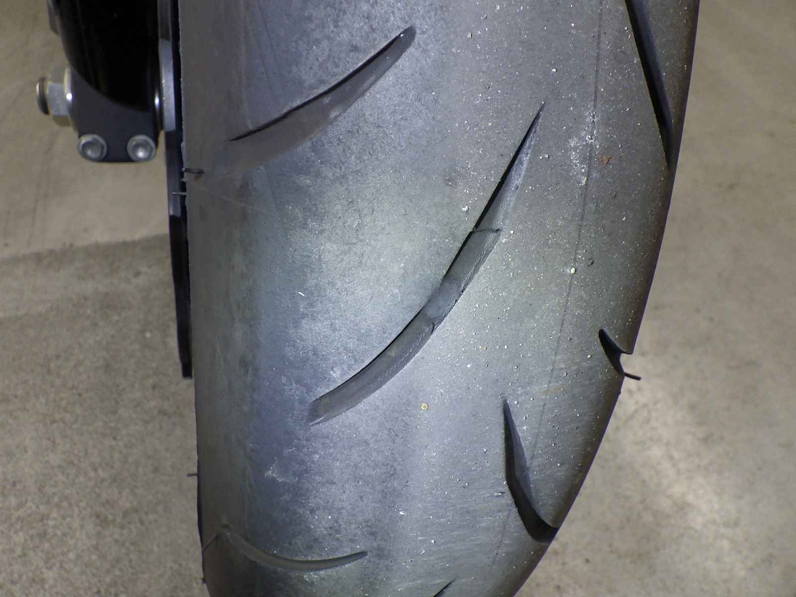 Передняя покрышка: Требуется замена изношенного шины.
