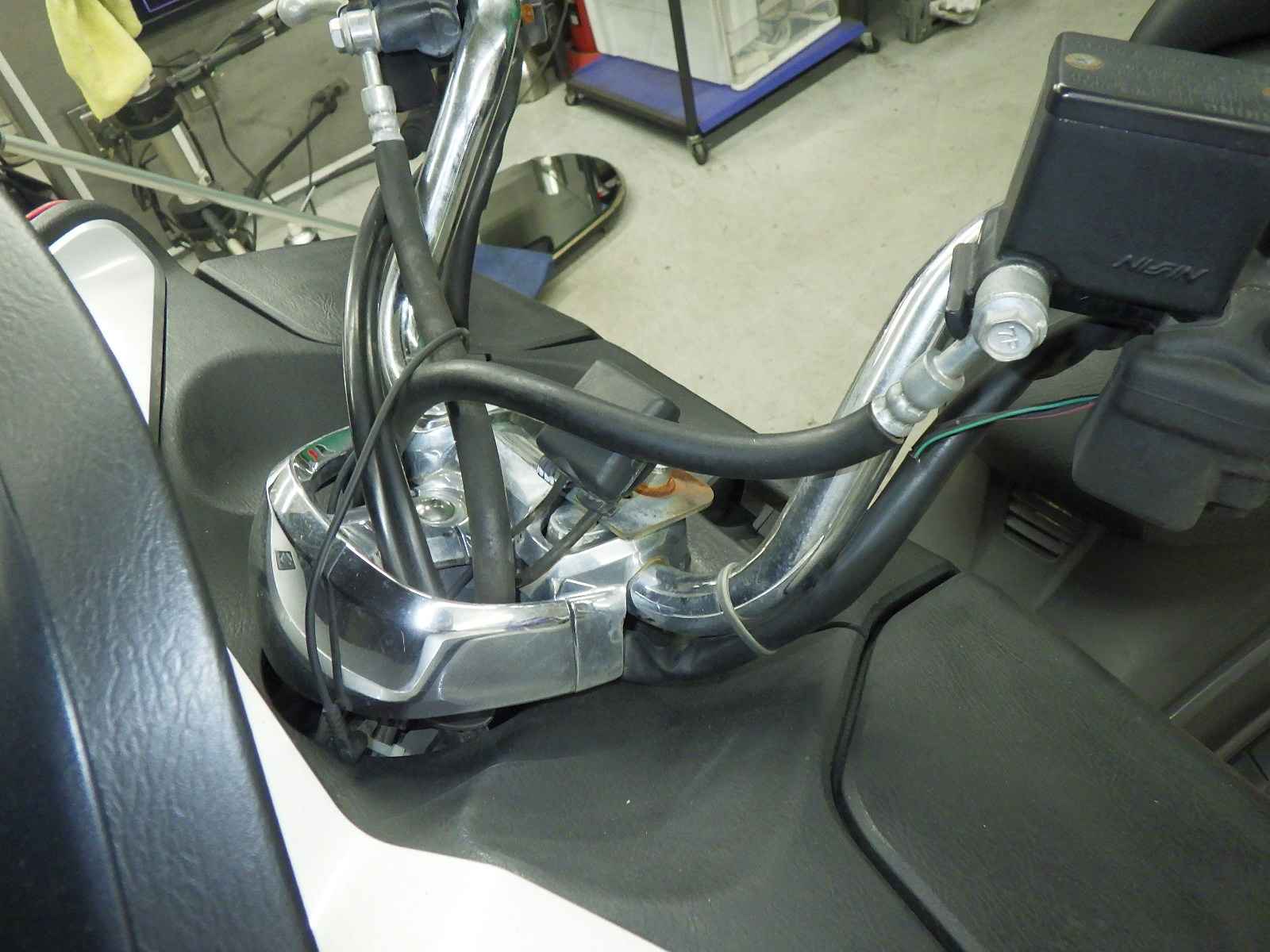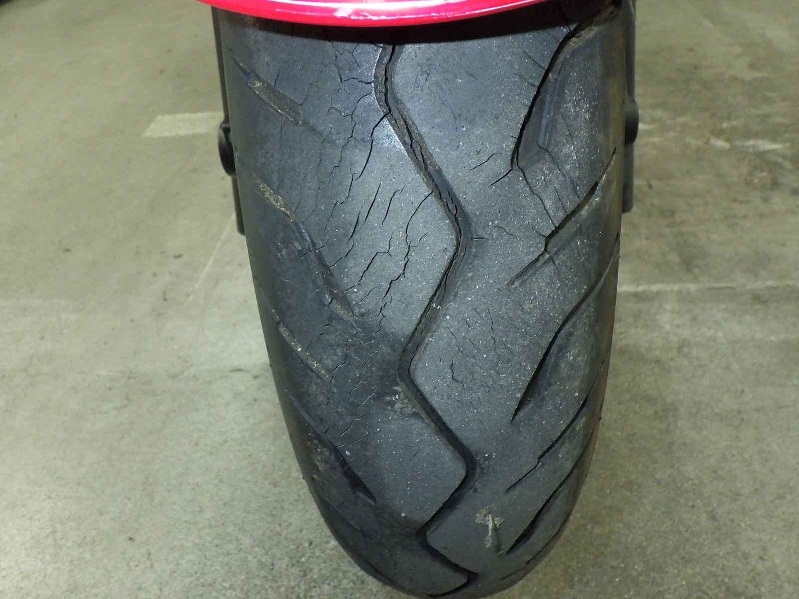 Передняя покрышка: Трещина на шине, требуется замена.