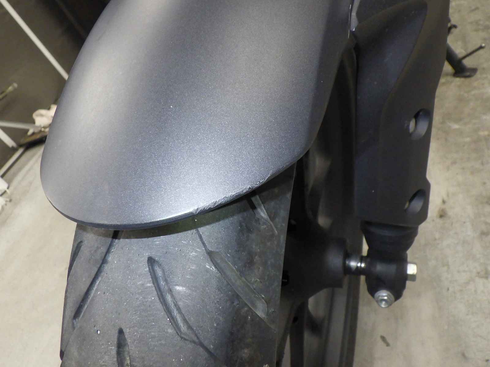 Передняя покрышка: Трещина на шине, требуется замена.