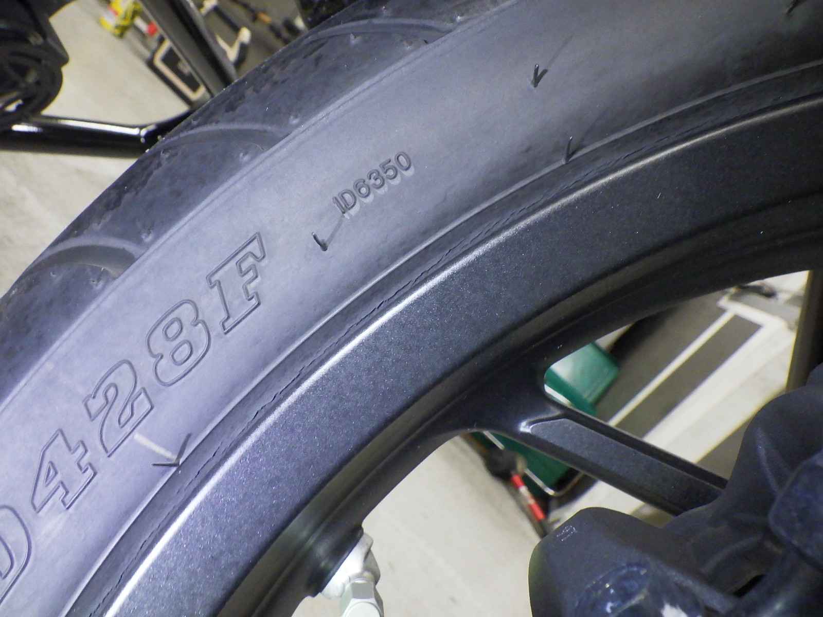 Передняя покрышка: Трещина на шине, требуется замена.
