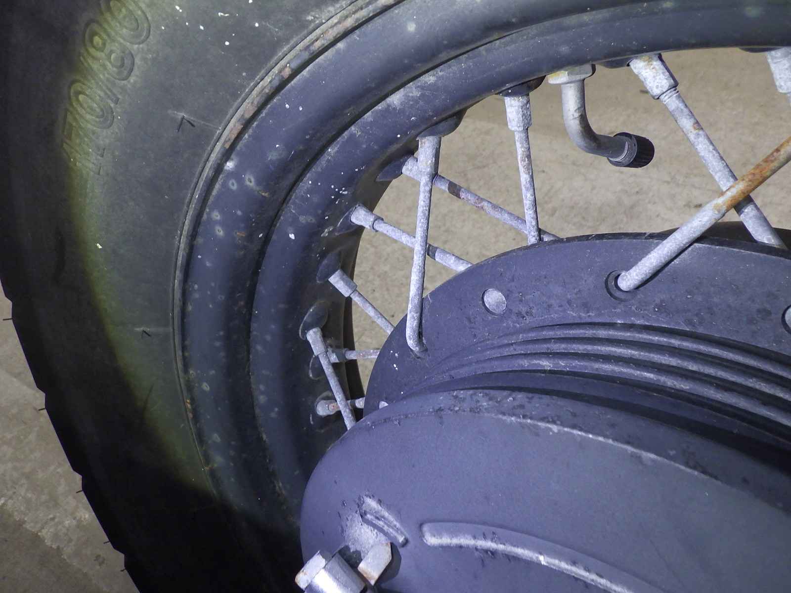Задняя покрышка: Снижение давления в шине, Трещина требует замены.