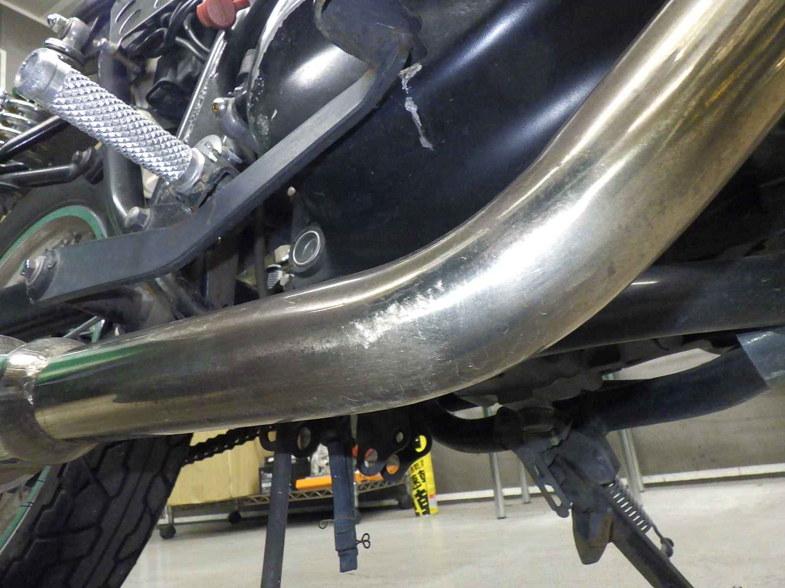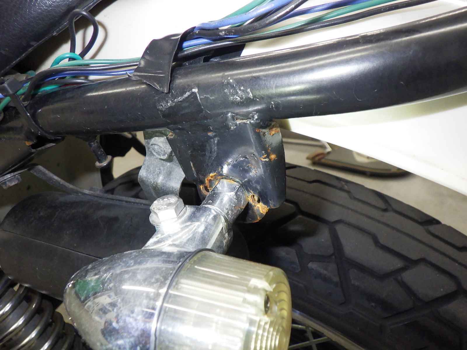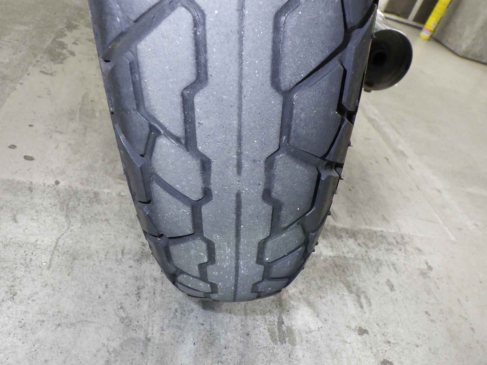 Задняя покрышка: Снижение давления в шине, Трещина требует замены.