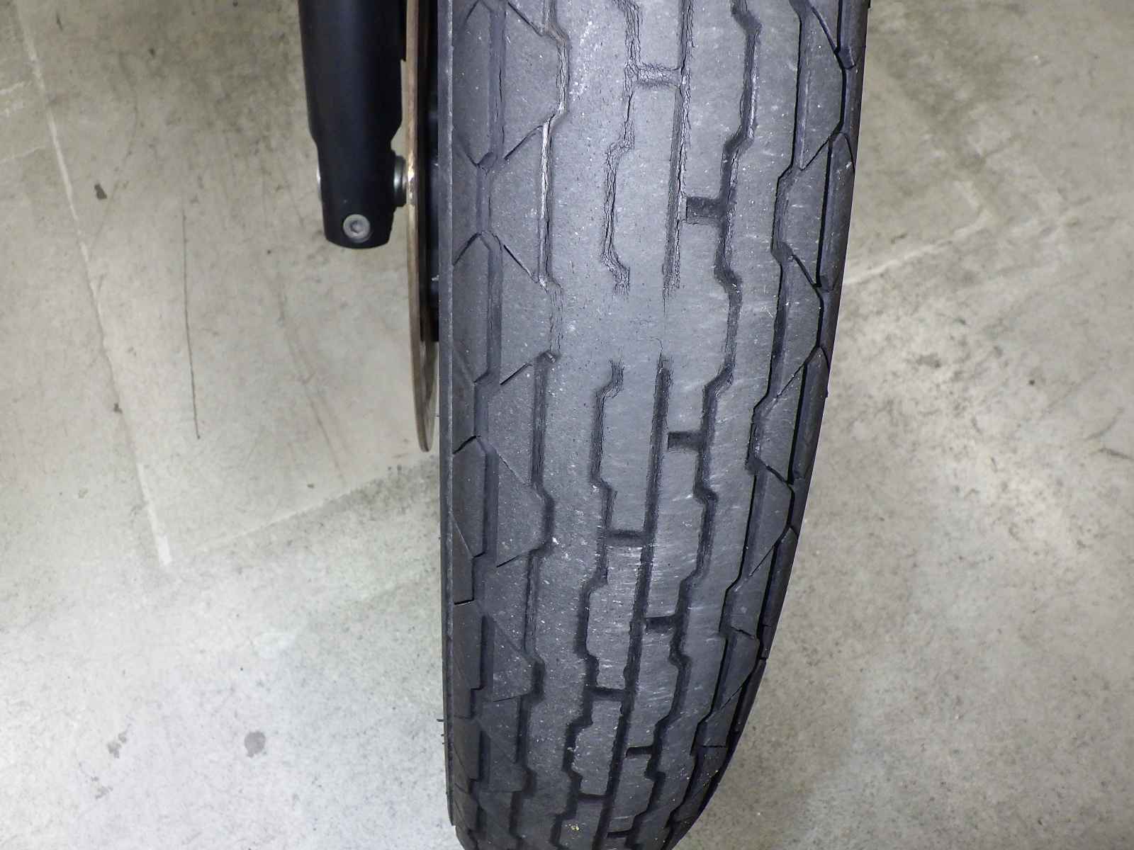 Передняя покрышка: Снижение давления в шине, Трещина требует замены.