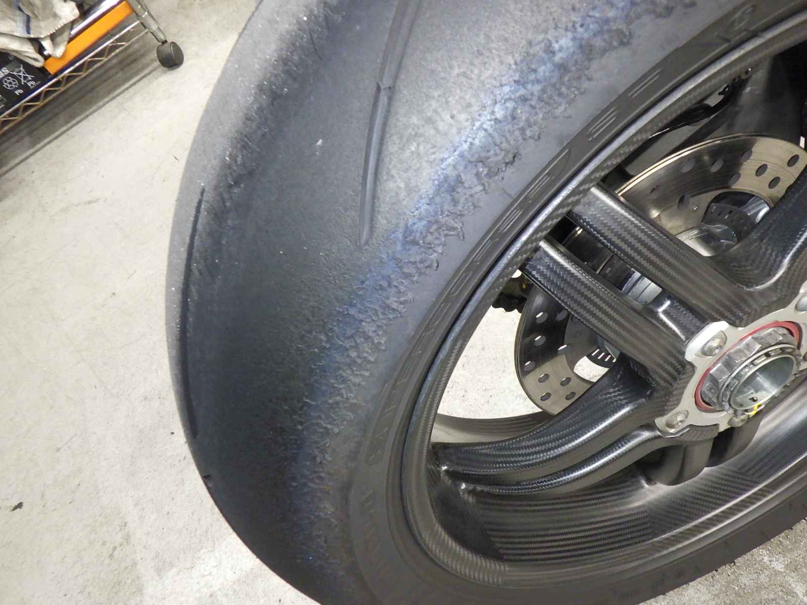 Задняя покрышка: Требуется замена шины, Таять