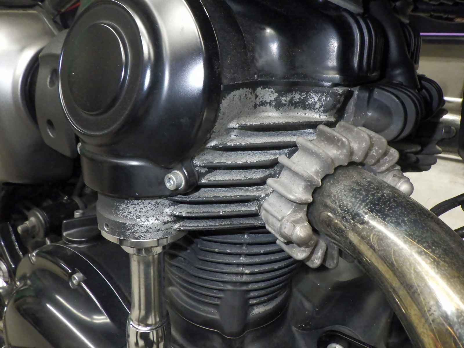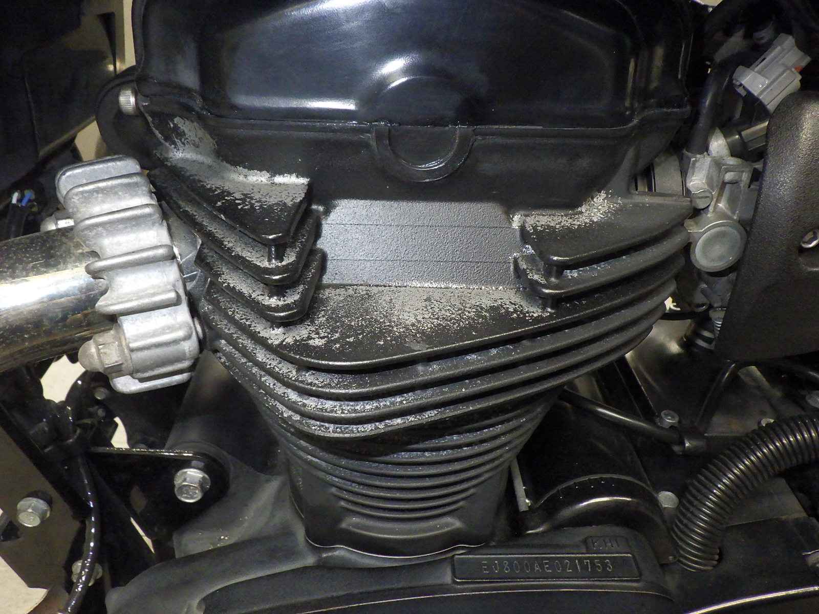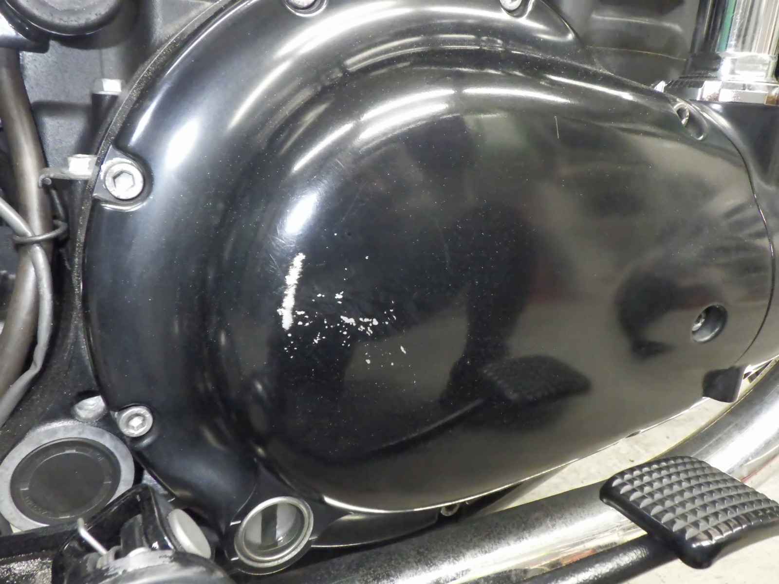 Крышка картера: Покрытие мотоцикла облезло, образовав "плешину" в краске