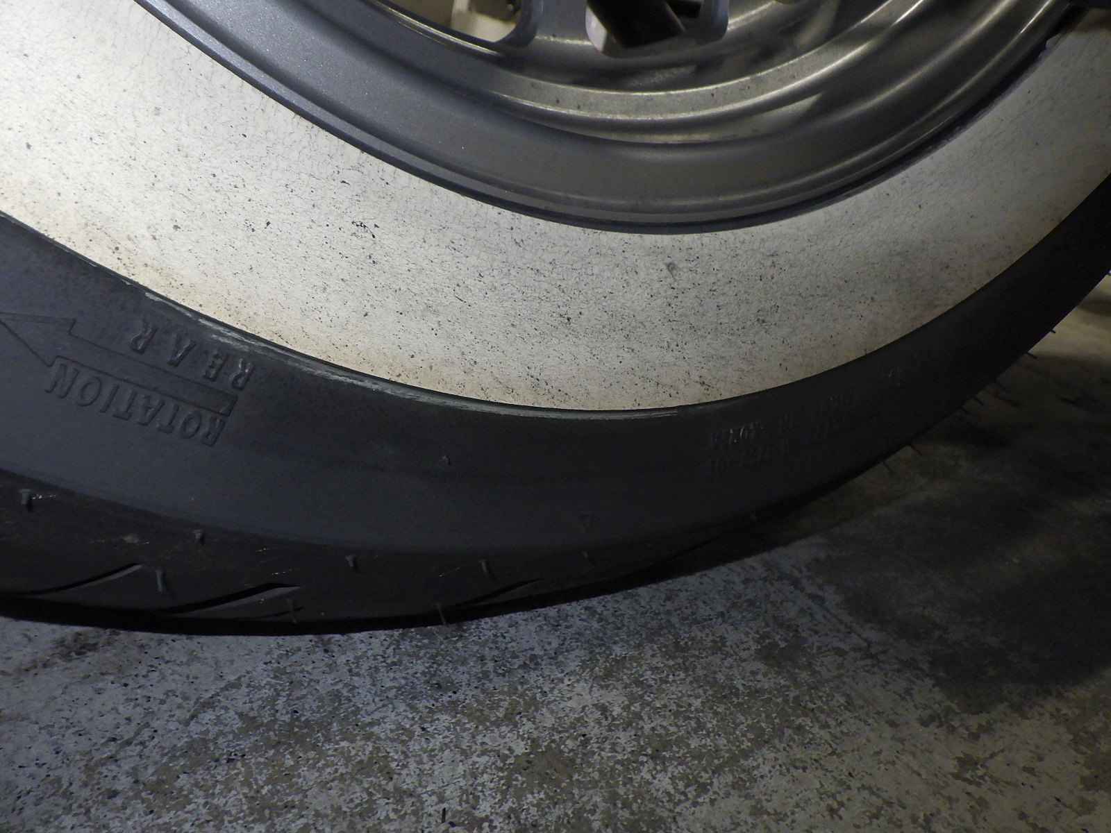 Задняя покрышка: Трещина на шине, требуется замена.