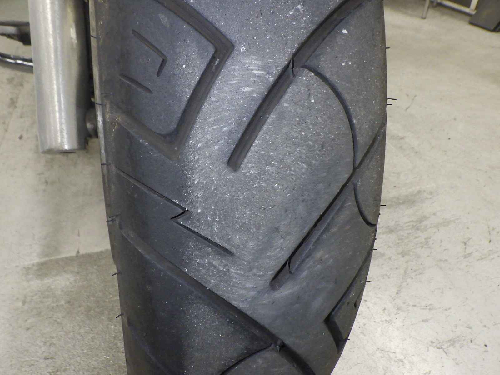 Передняя покрышка: Трещина на шине, требуется замена.