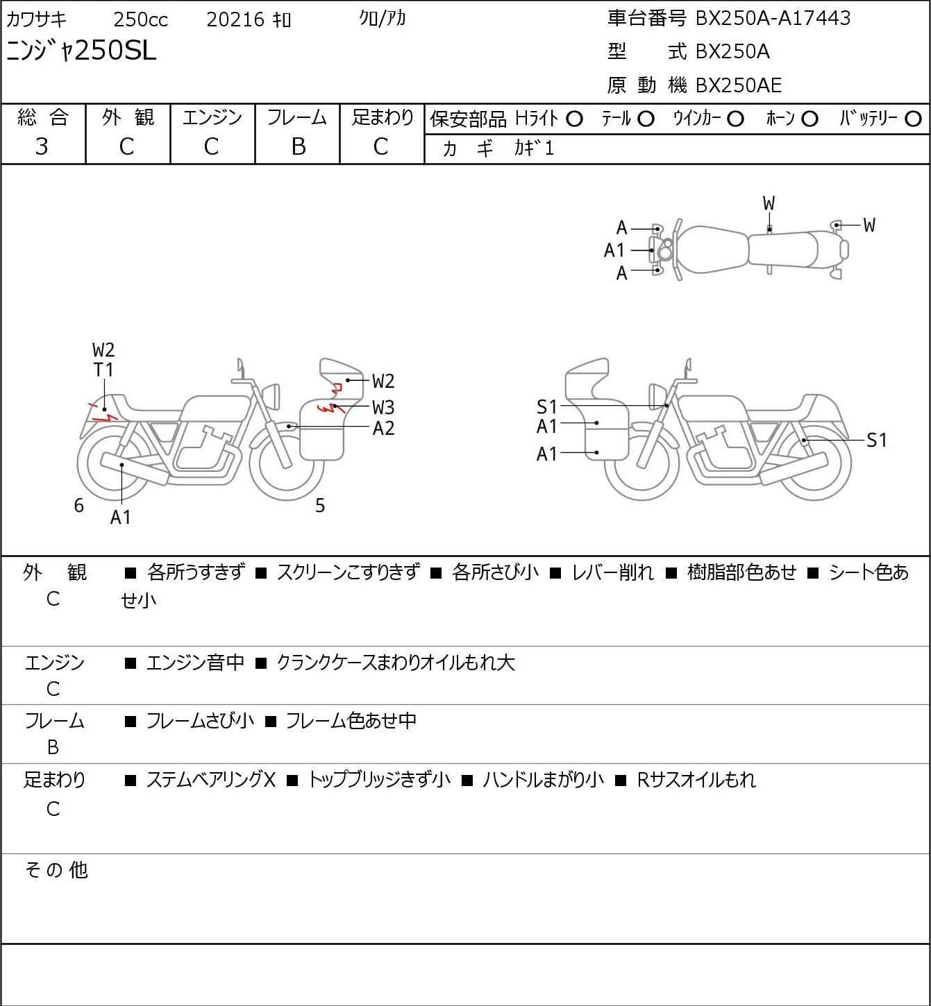 Номер рамы: BX250A-A17443