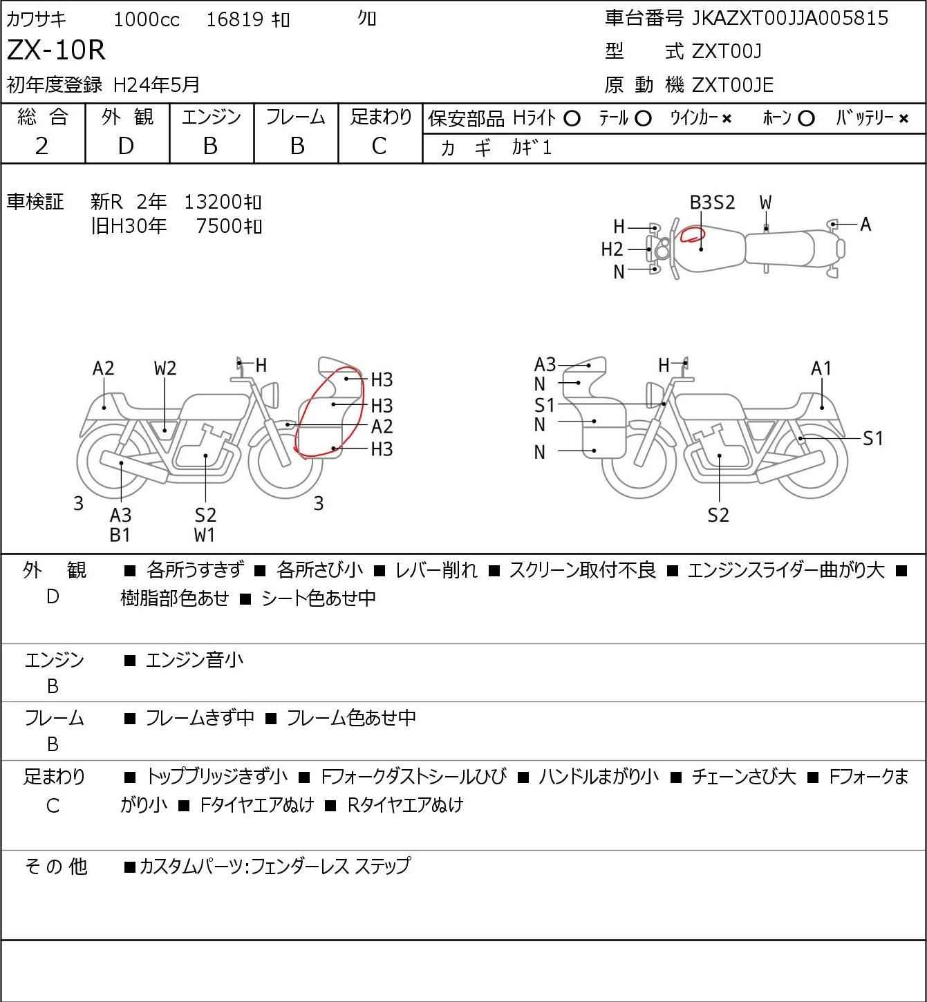 Номер рамы: JKAZXT00JJA005815