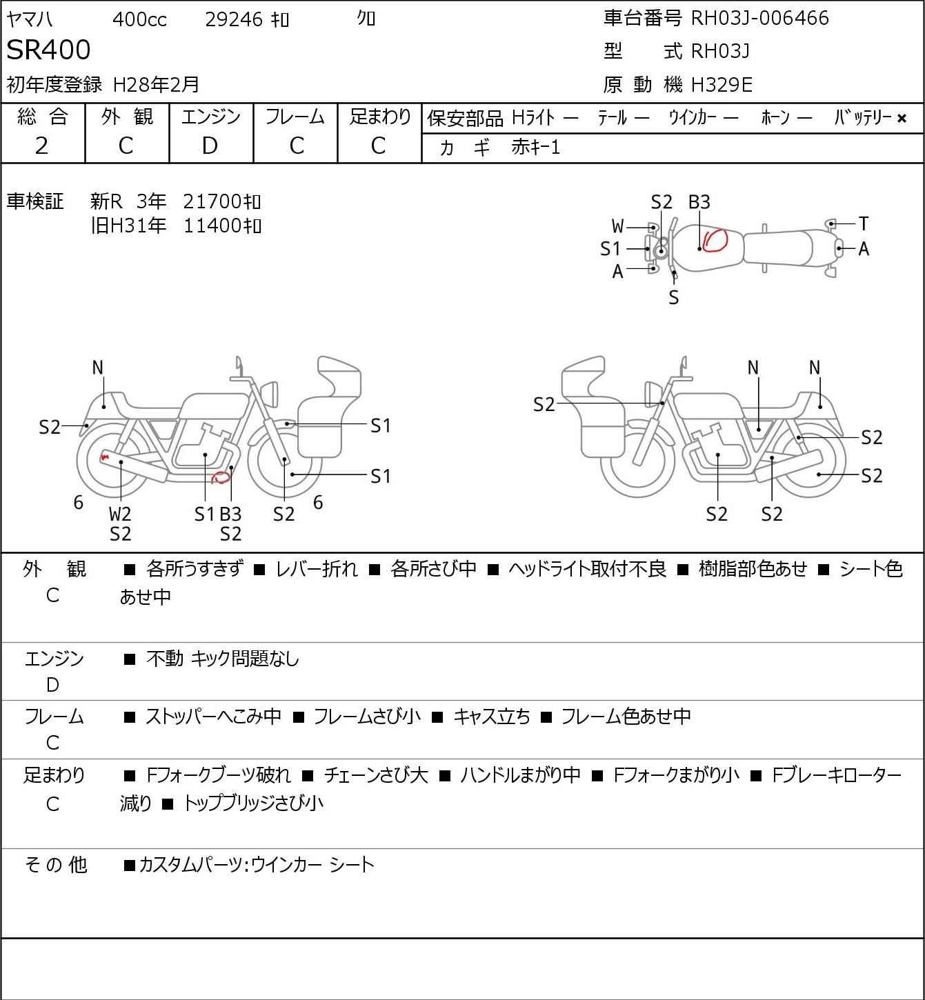 Номер рамы: RH03J-006466