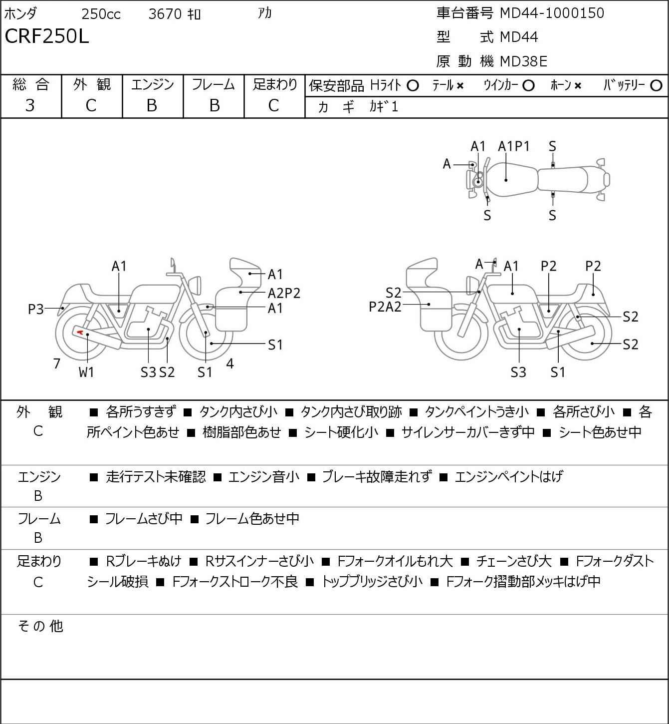 Номер рамы: MD44-1000150