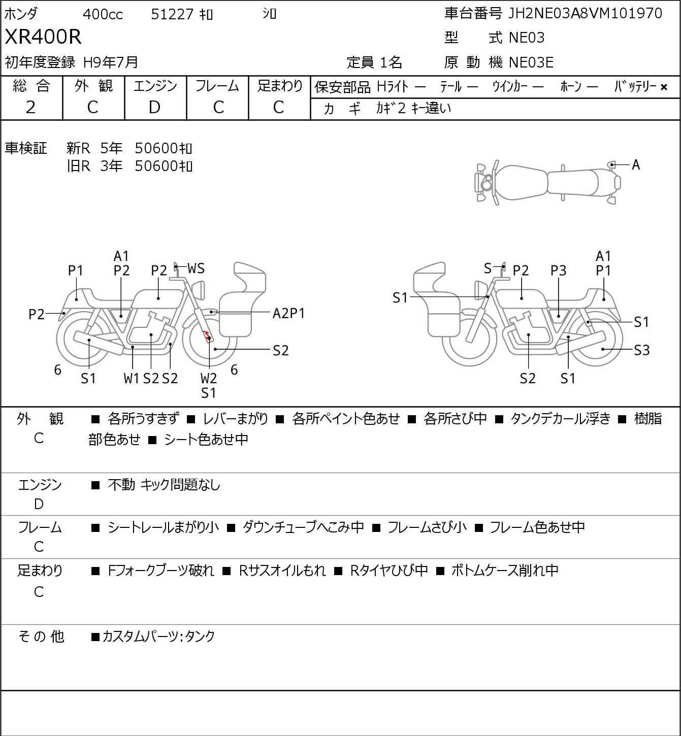 Номер рамы: JH2NE03A8VM101970