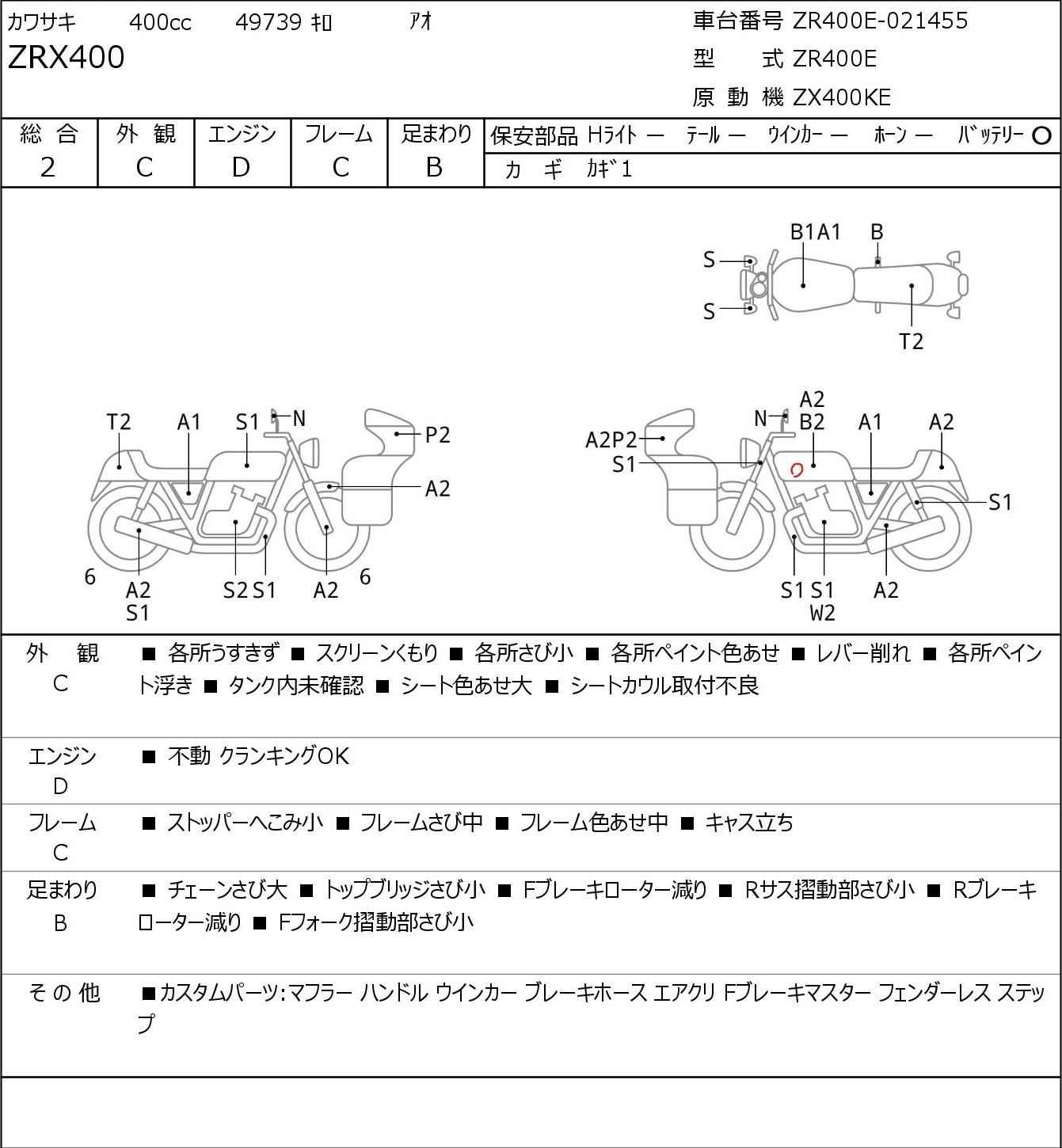Номер рамы: ZR400E-021455