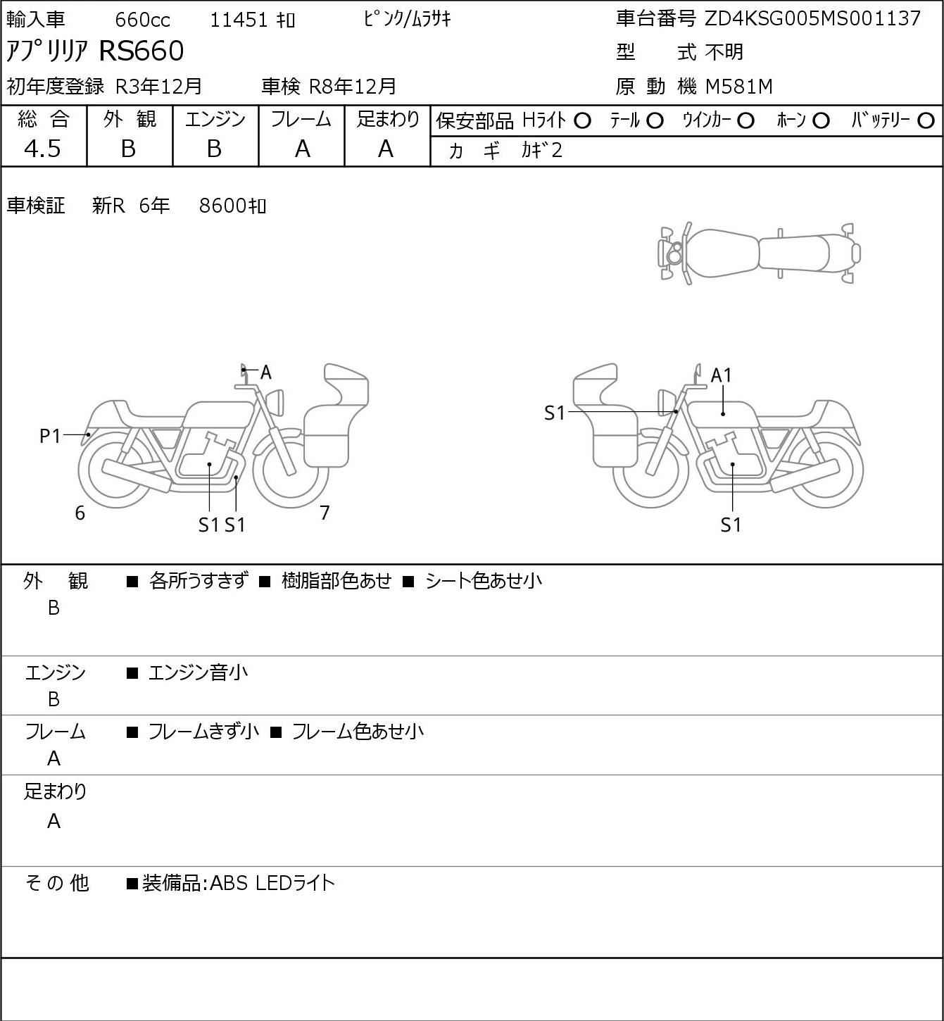 Номер рамы: ZD4KSG005MS001137