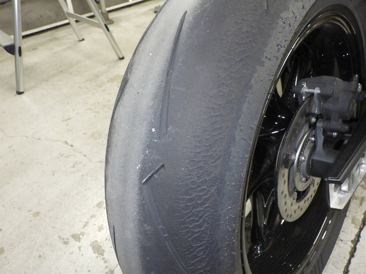 Задняя покрышка: Требуется замена изношенного шины., Таять