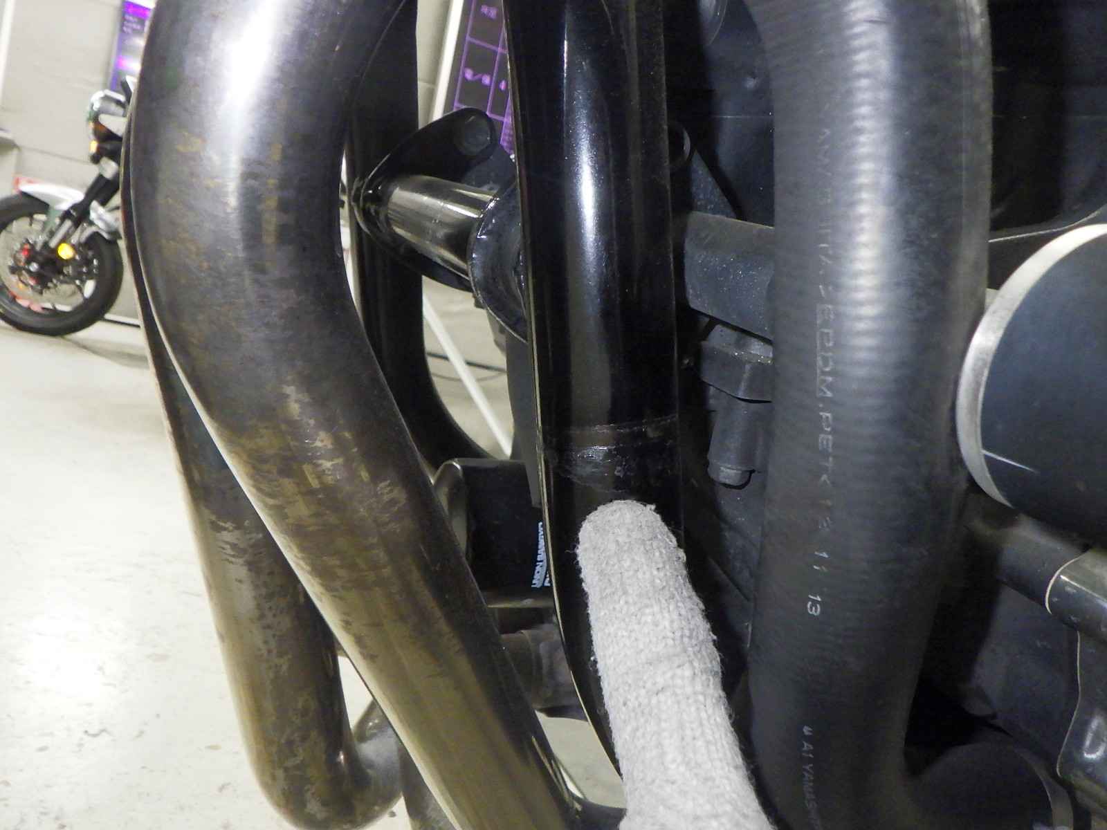 Нижняя труба рамы: Вмятина на нижней трубе