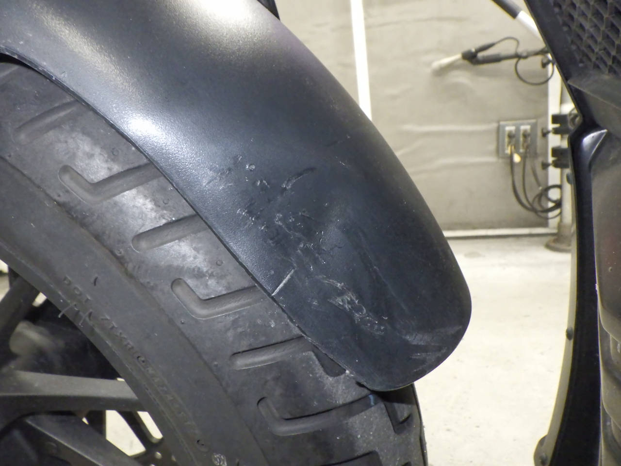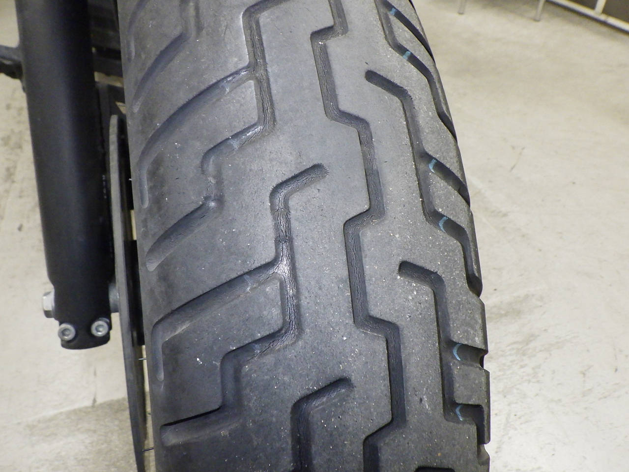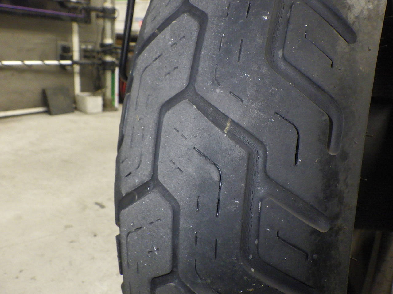 Передняя покрышка: Снижение давления в шине, Трещина требует замены.