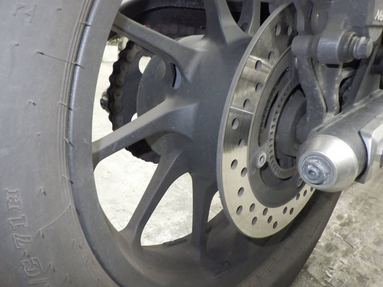 Задняя покрышка: Трещина на шине, требуется замена.