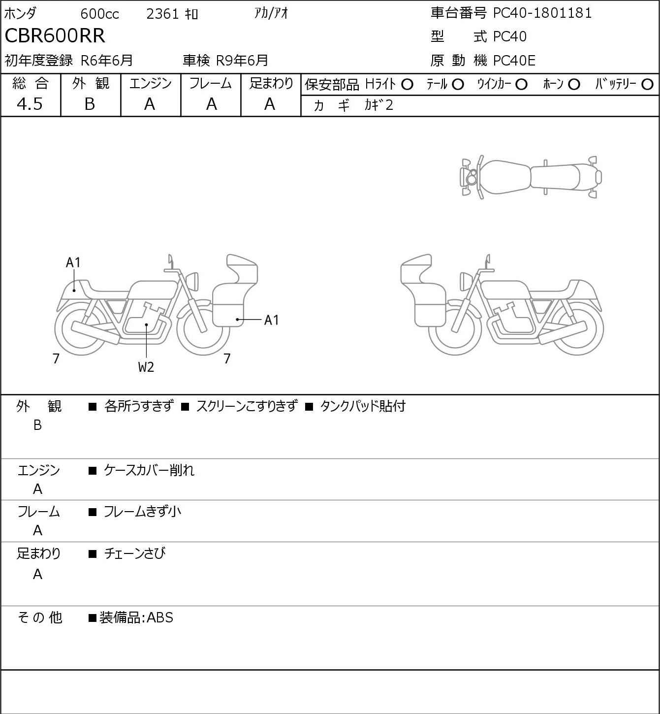 Номер рамы: PC40-1801181