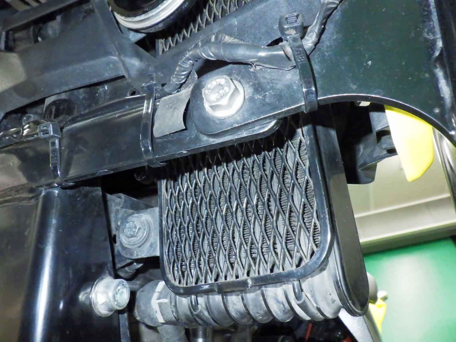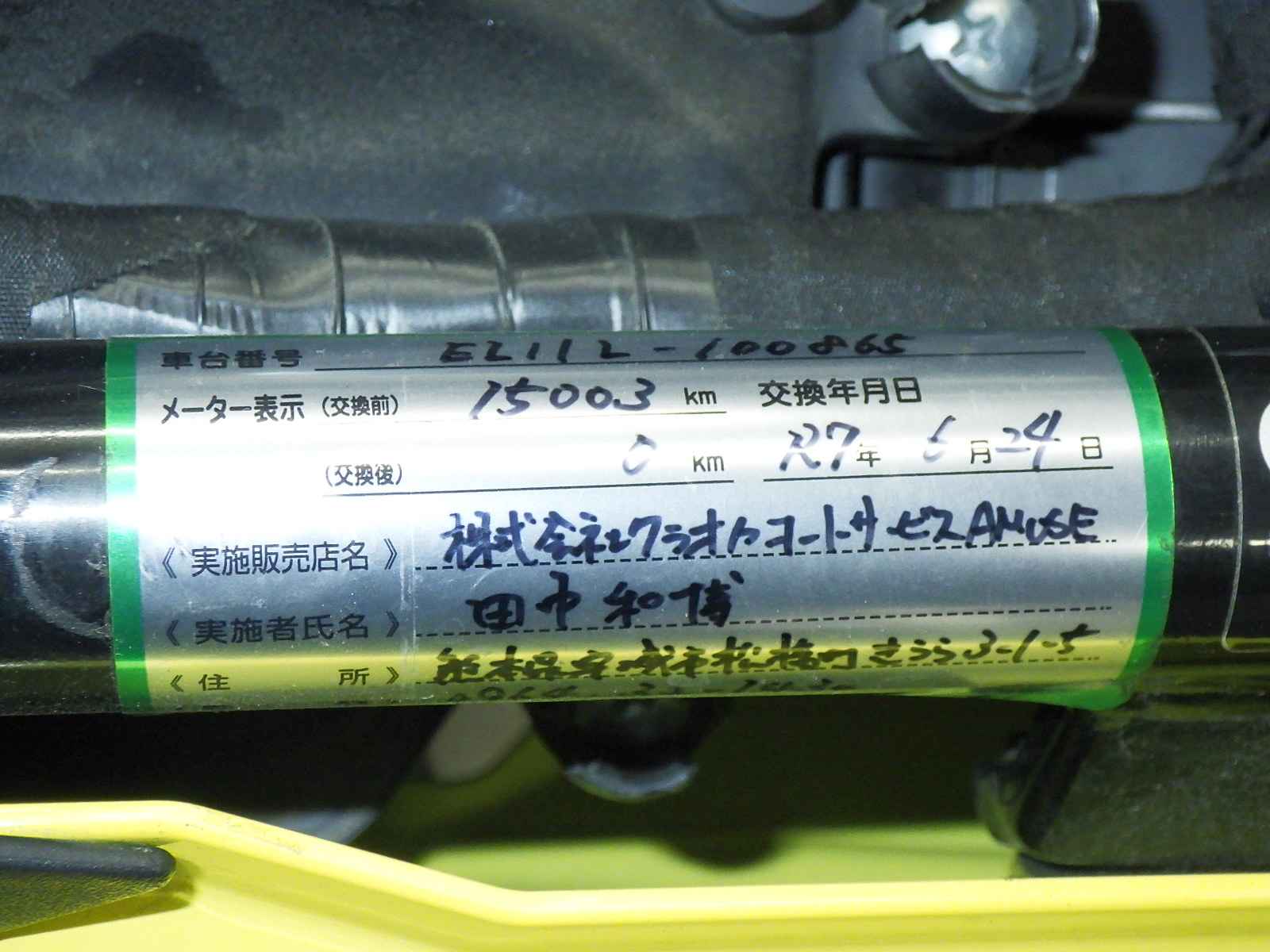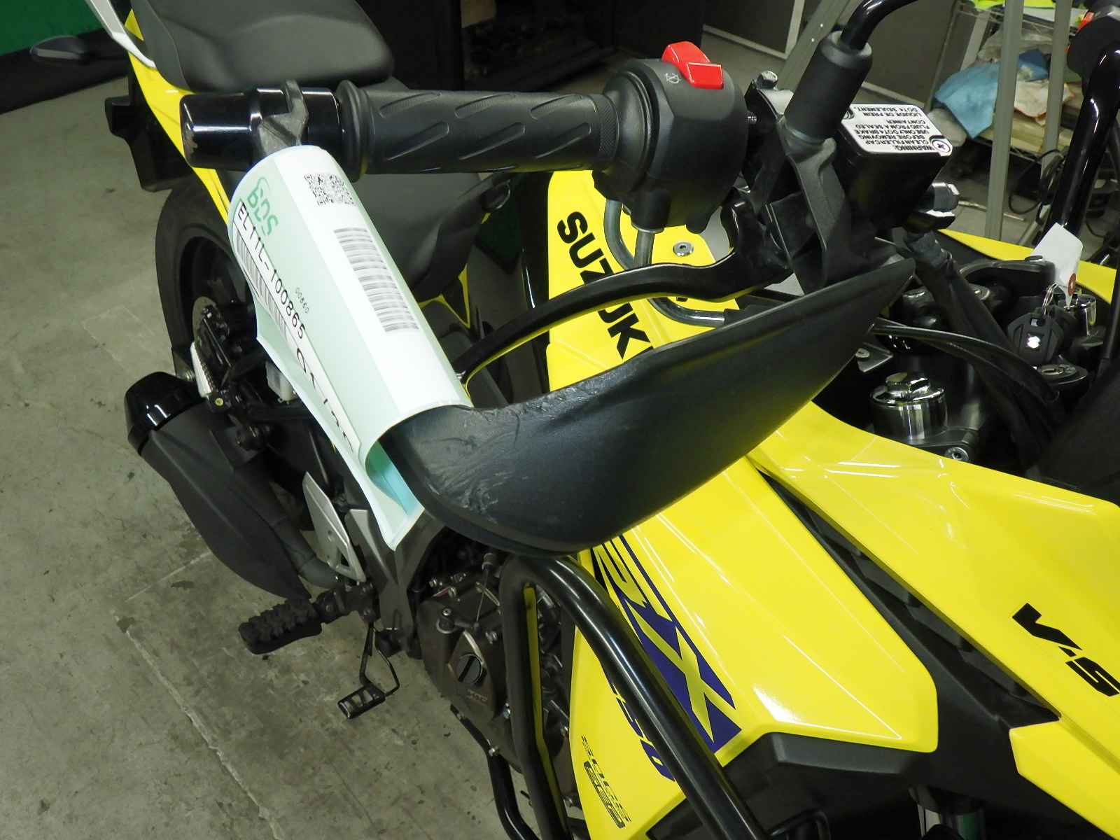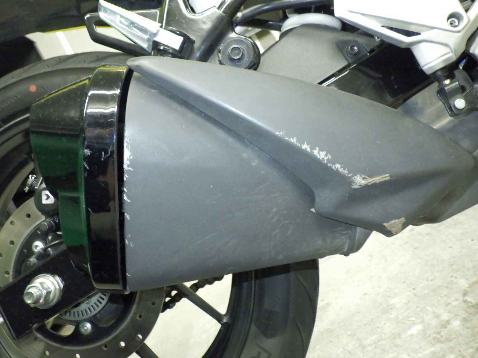 メーター交換車。シール距離交換前15003km、後0km。エンジンガード付きキズ多、塗り。