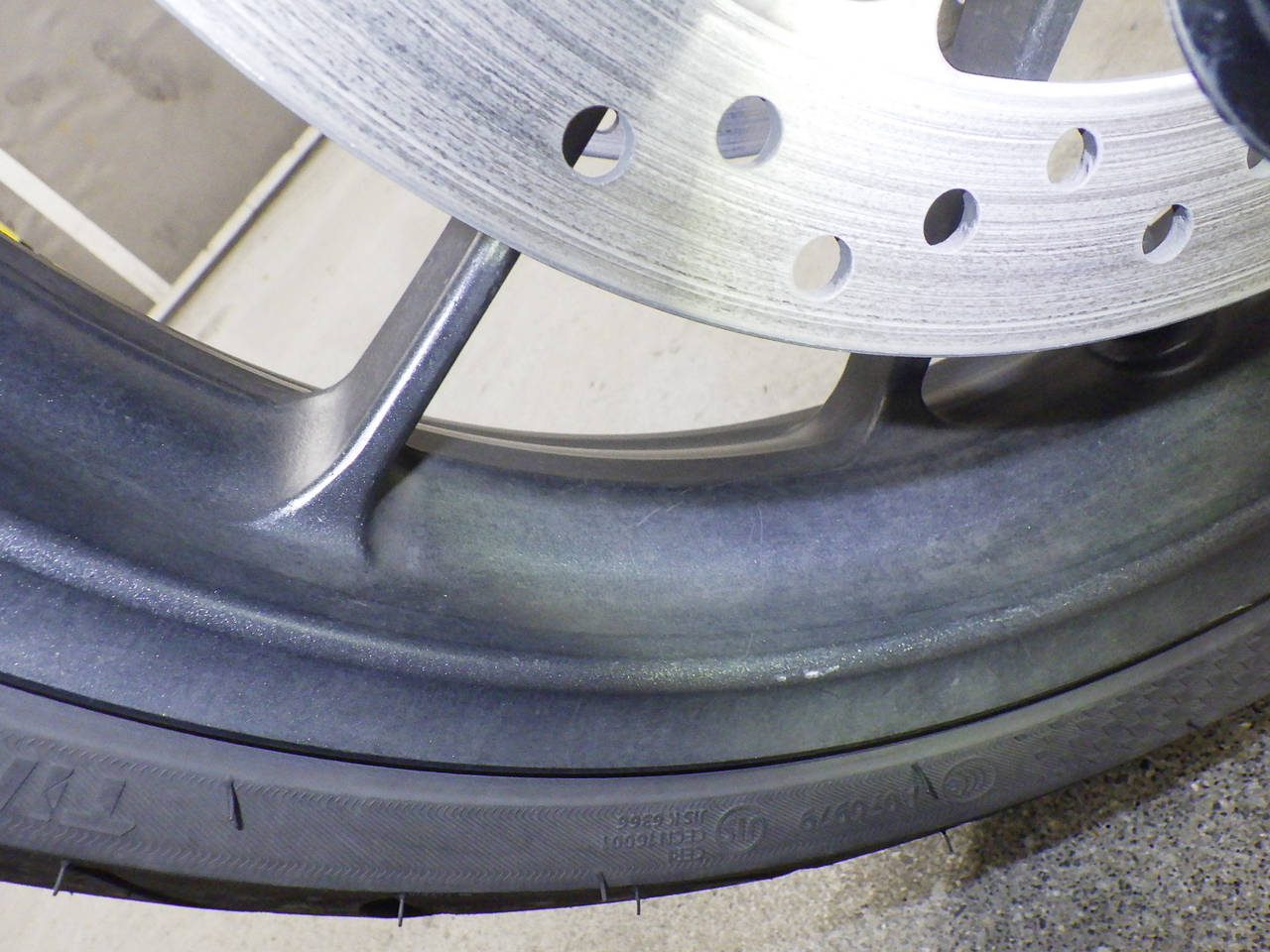Заднее колесо: Краска на колесе облезла.