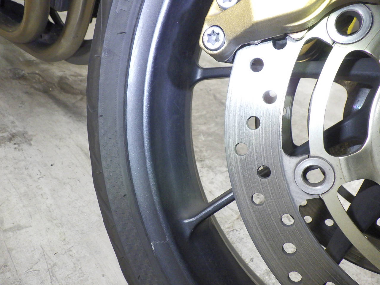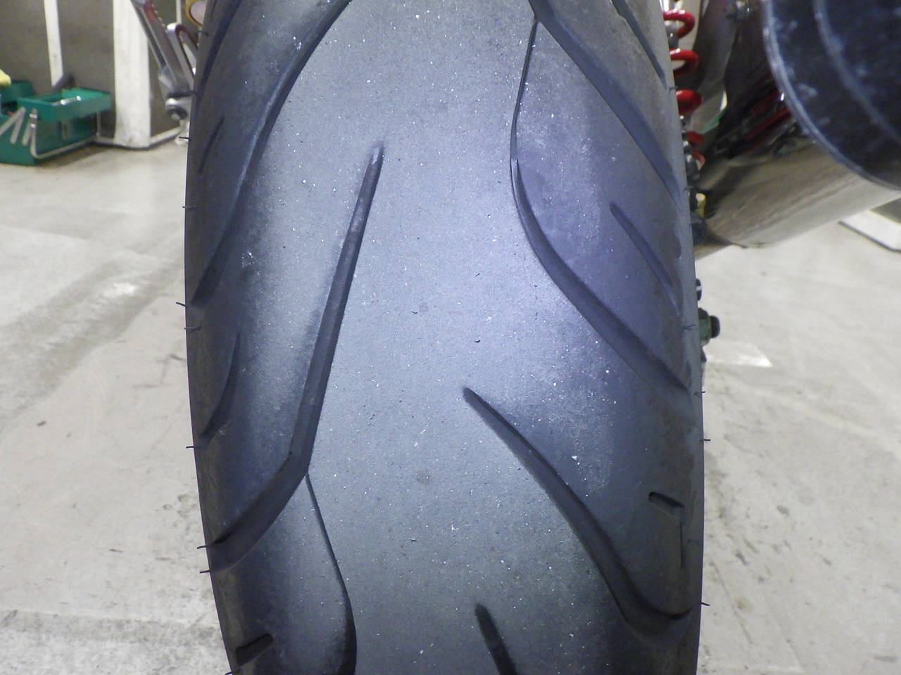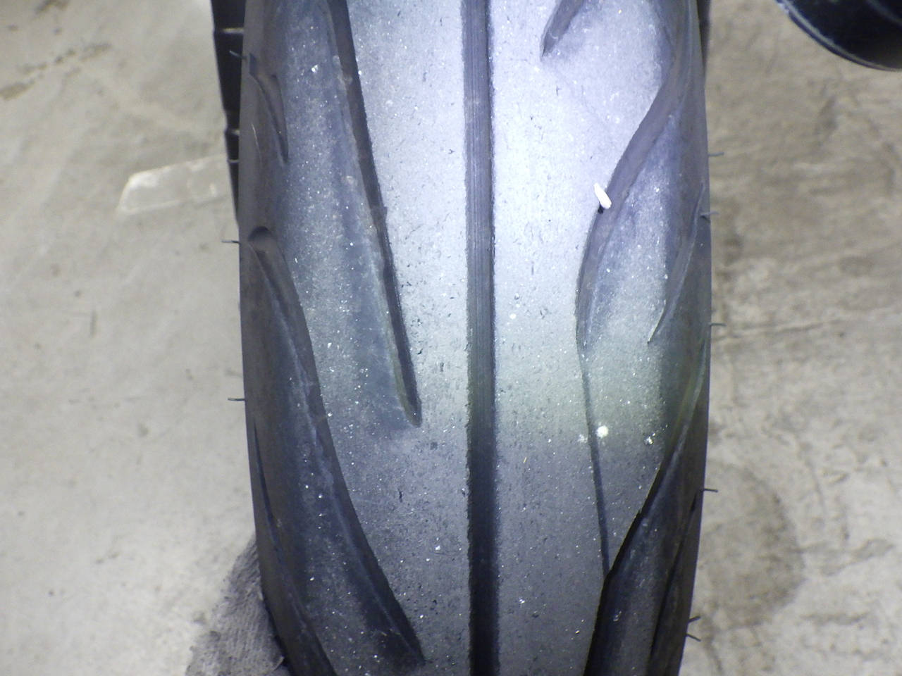 Передняя покрышка: Трещина на шине, требуется замена.