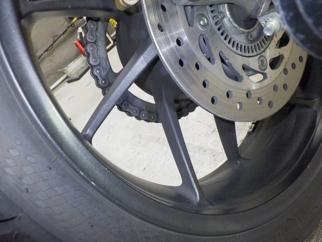 Задняя покрышка: Трещина на шине, требуется замена.
