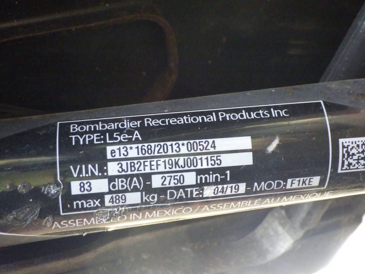 Номер рамы: 3JB2FEF19KJ001155