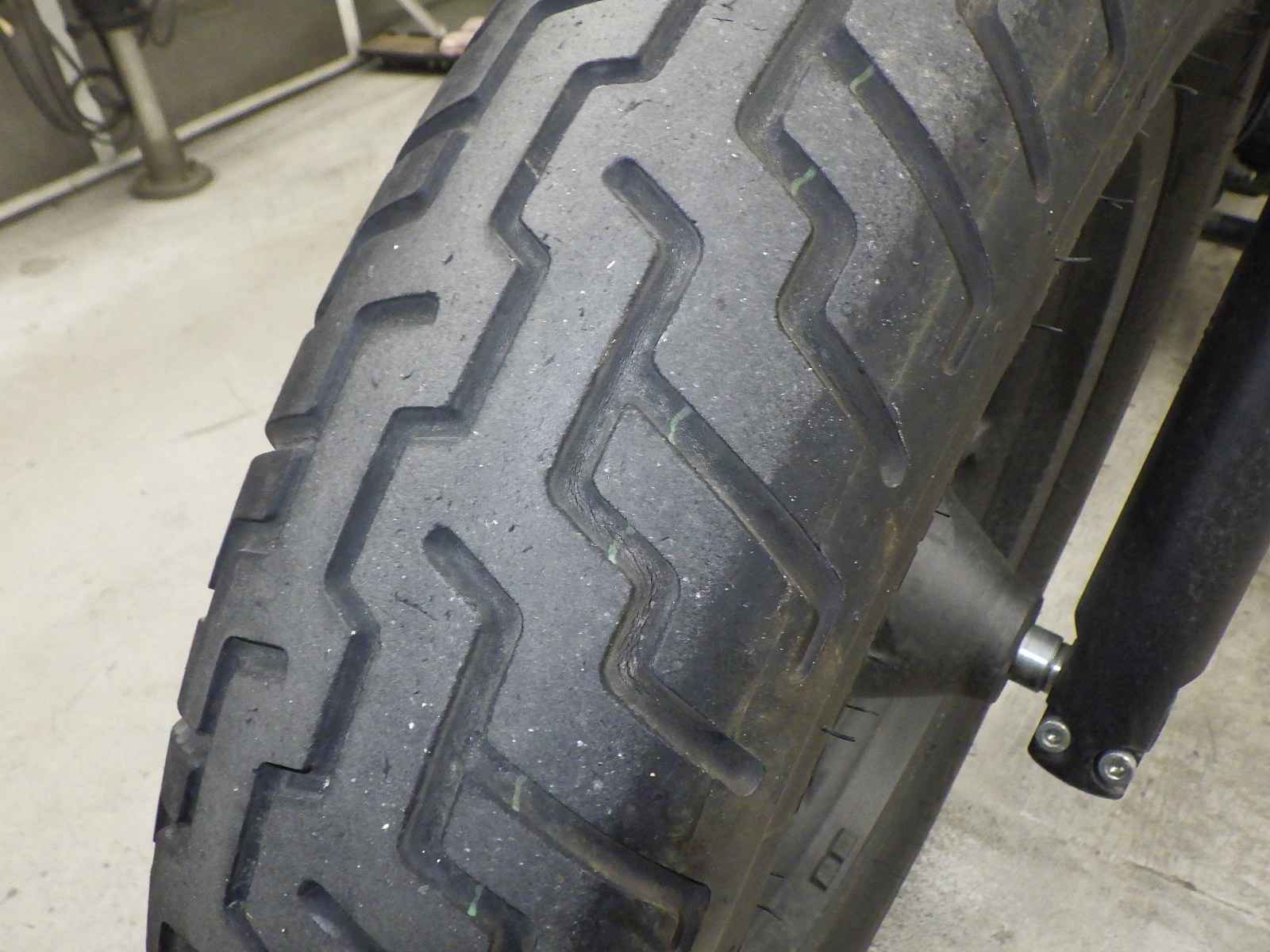 Передняя покрышка: Трещина на шине, требуется замена.