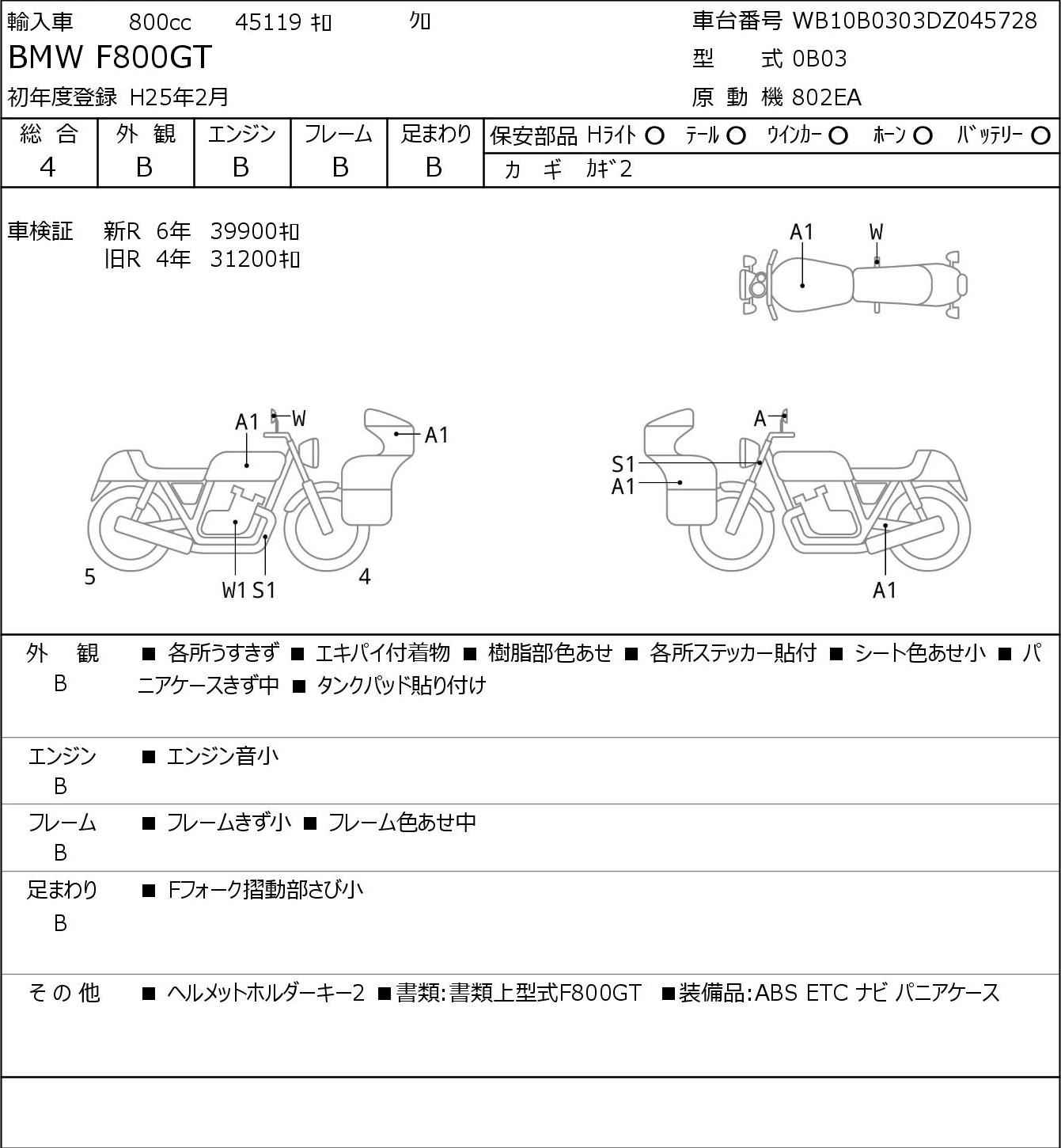 Номер рамы: WB10B0303DZ045728