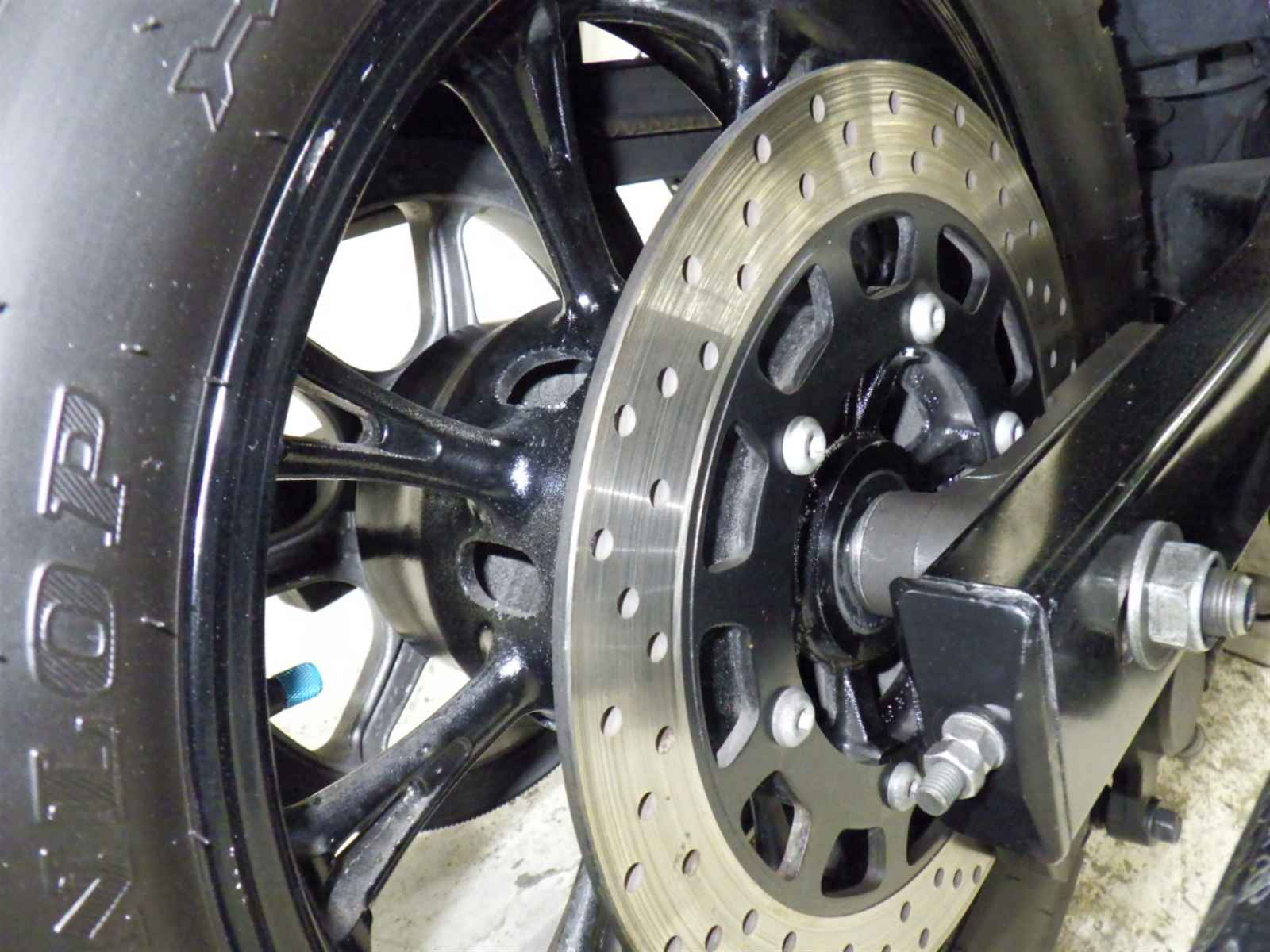 Задняя покрышка: Трещина на шине, требуется замена.