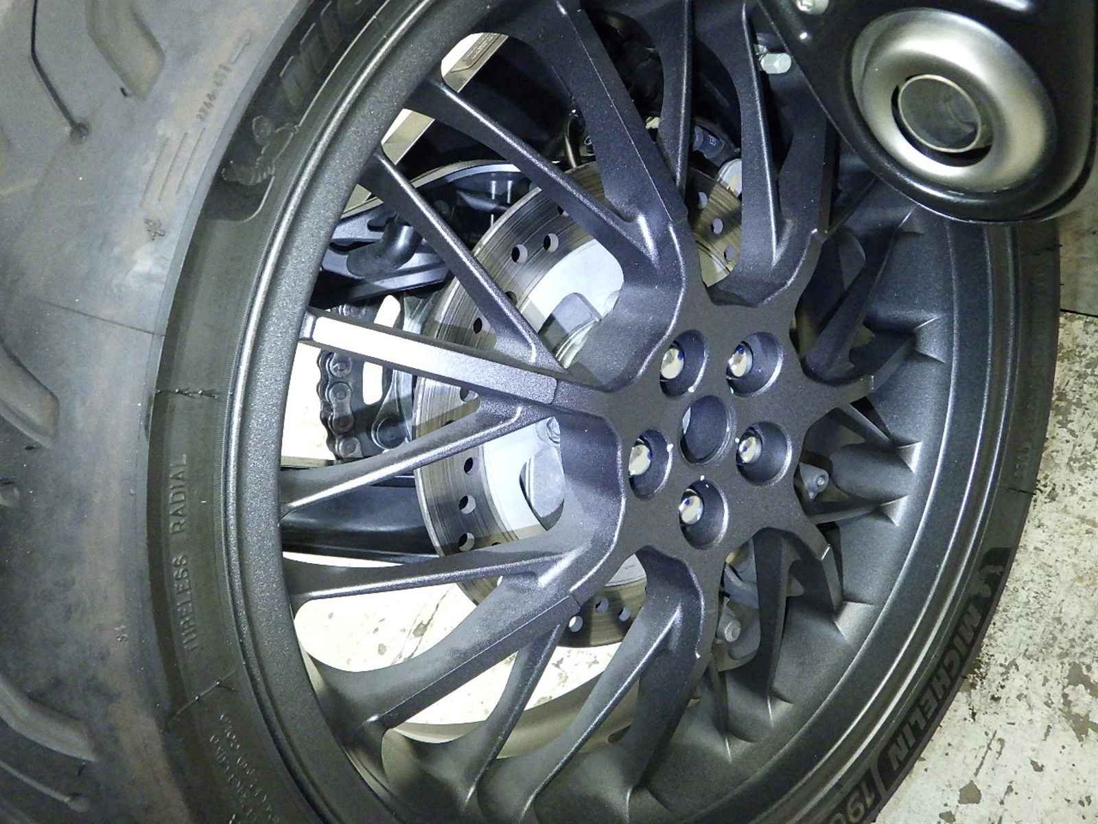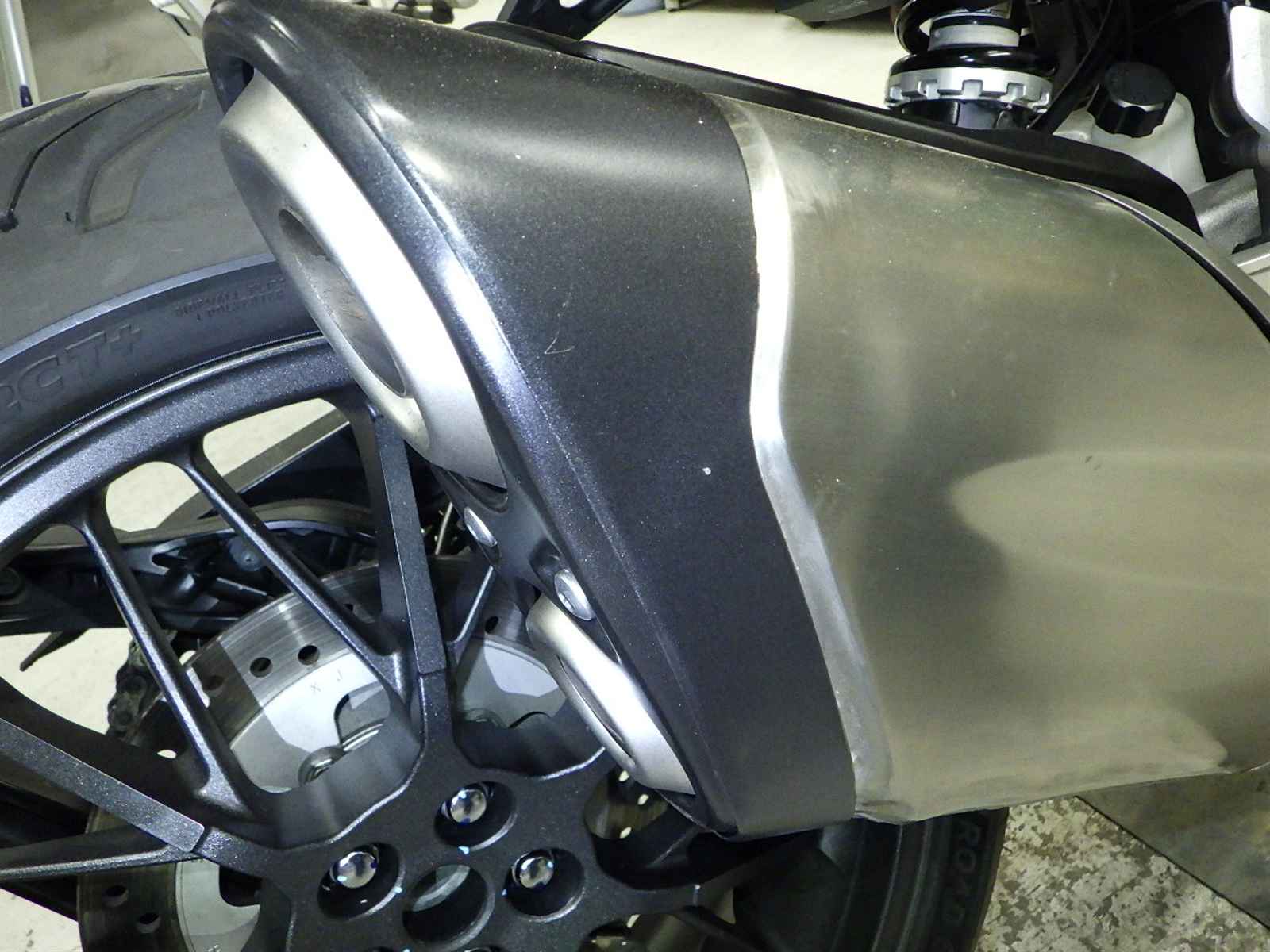 Переднее колесо: Недочет колеса, краска облупилась, Незначительно