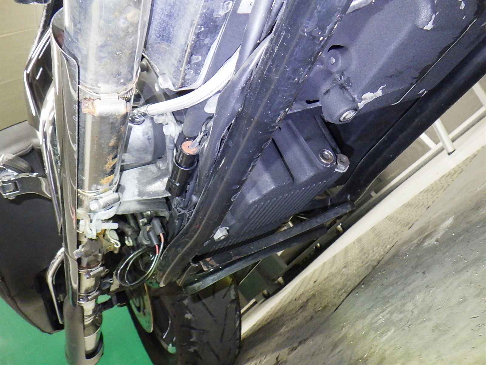 前ブレーキ効き甘い。エンジンガスケット修正。フロントワイヤー類社外。
