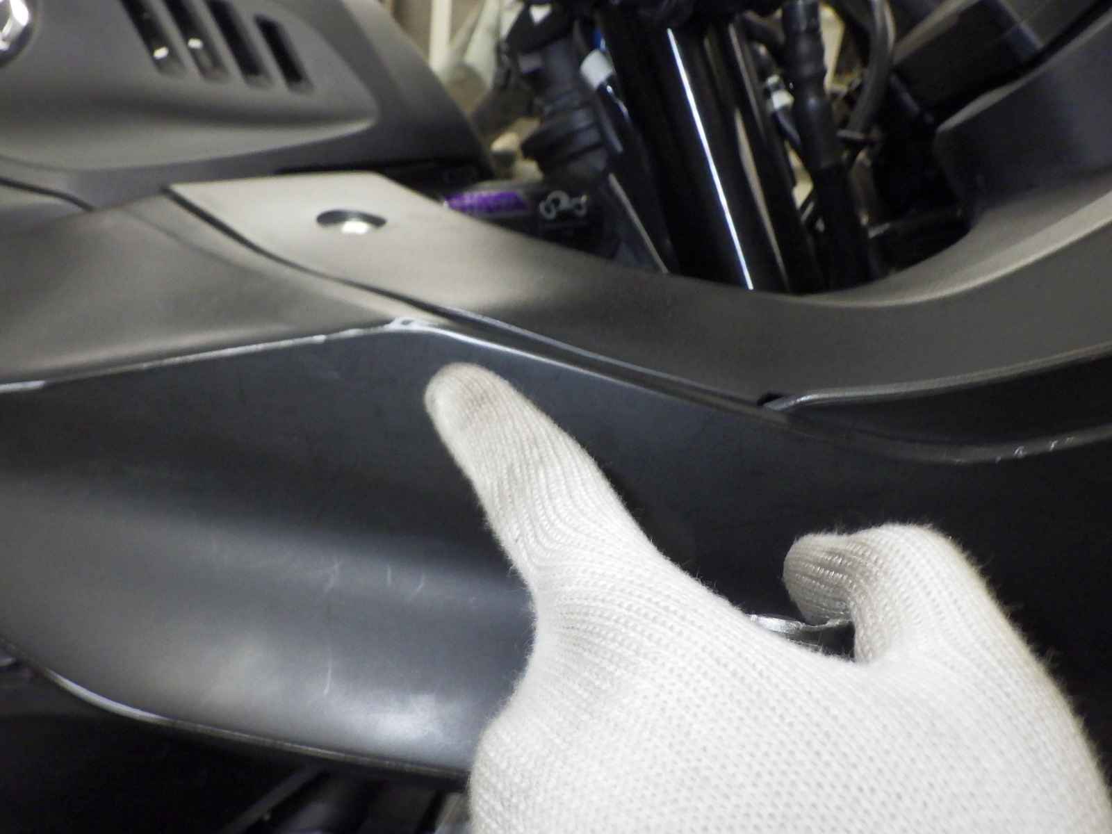 Передний пластик: Верхний недочет Уровень 3, облезлая краска