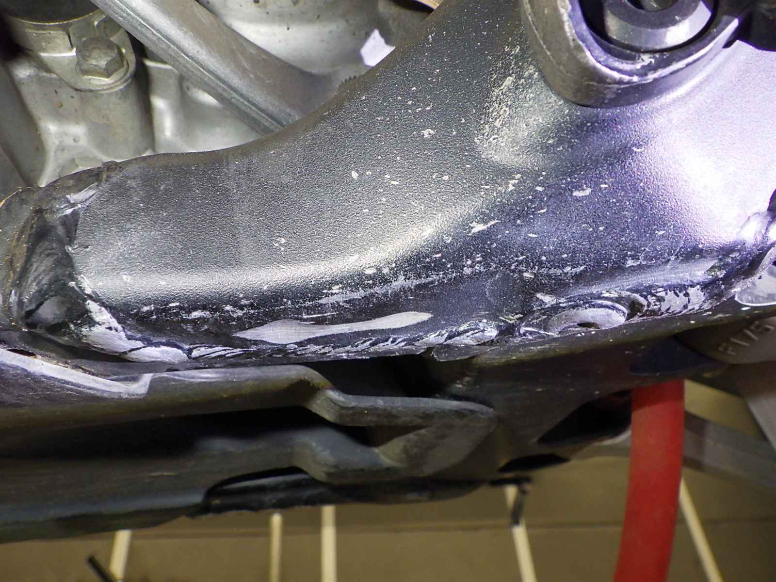 Нижняя труба рамы: Недочет нижнего трубчатого элемента Уровень 3, Вмятина, Незначительно