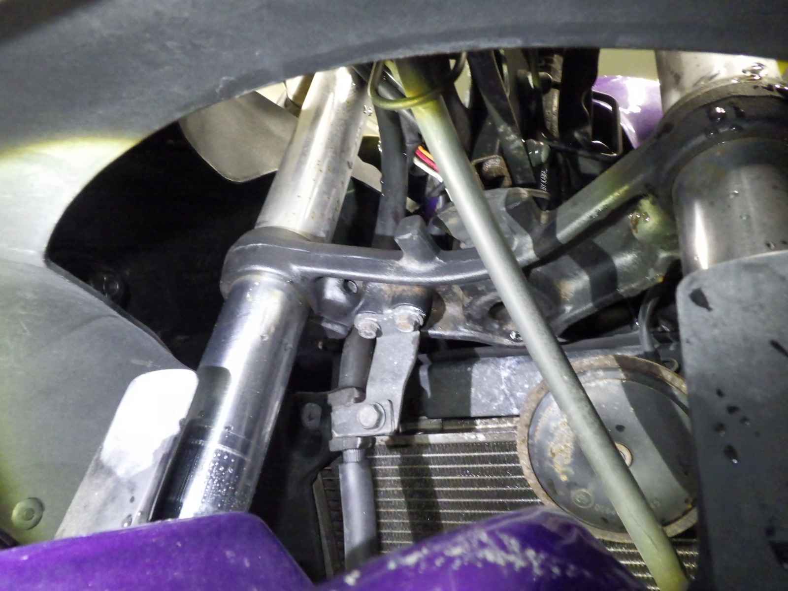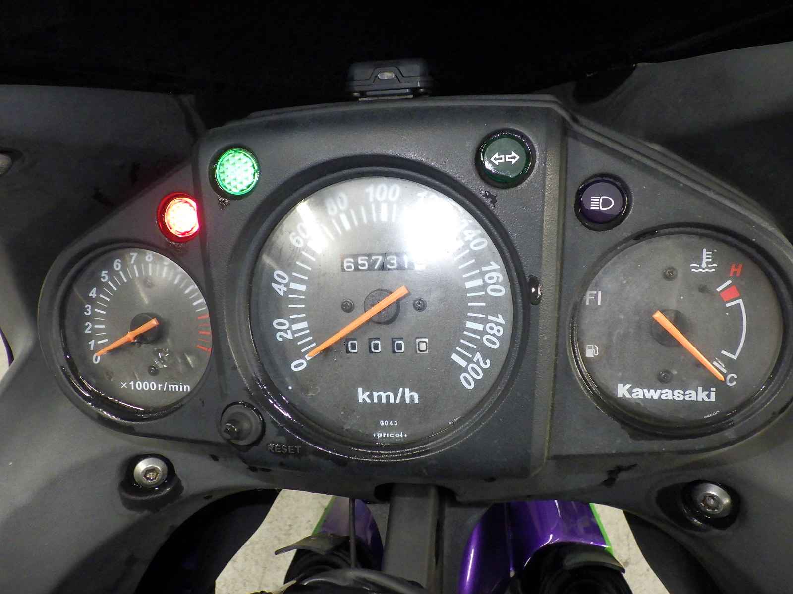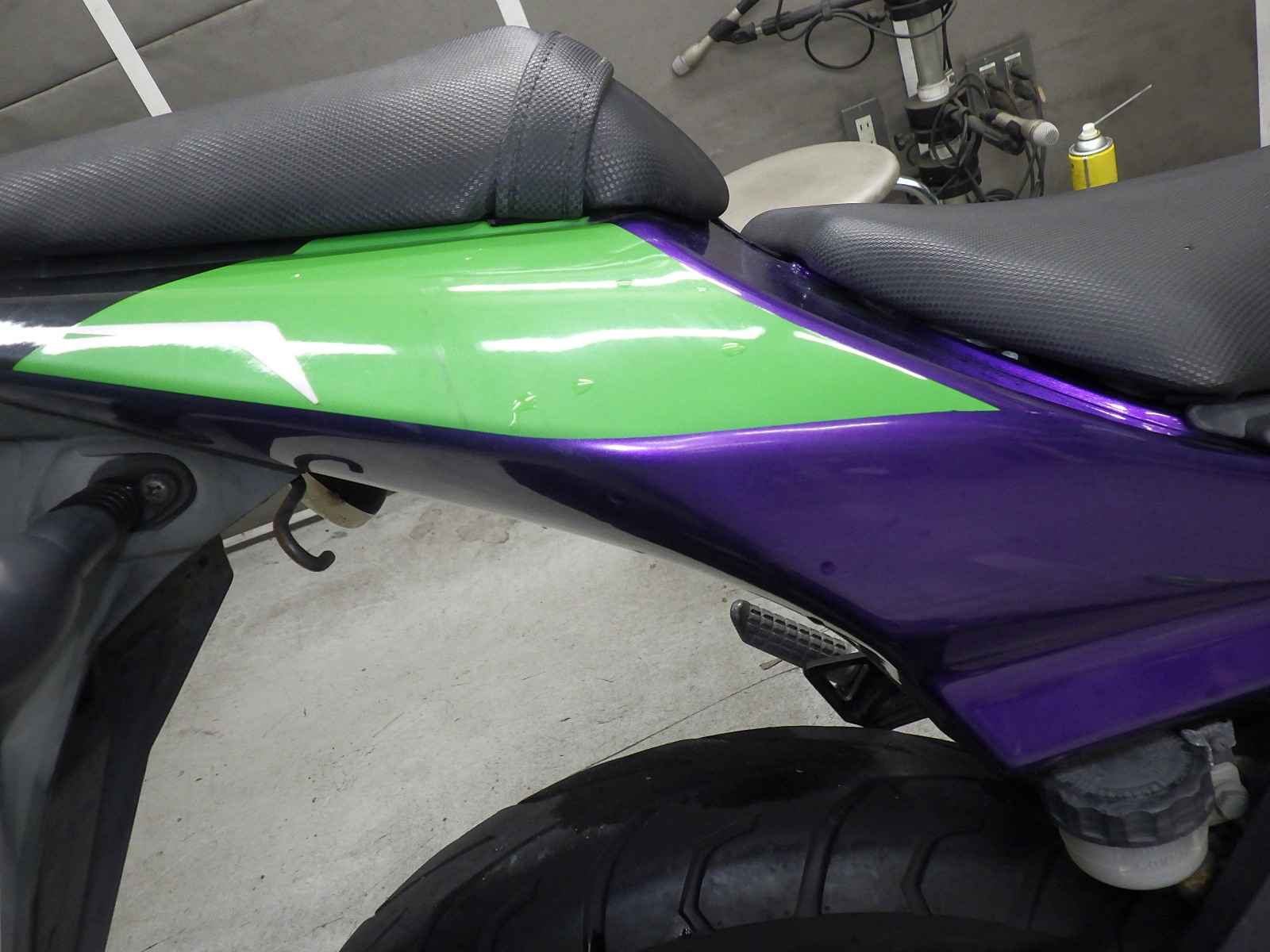 外装社外。インナーカウル変色大。ETC付き。前足回りねじれ、曲がり小。カウルズレ大。