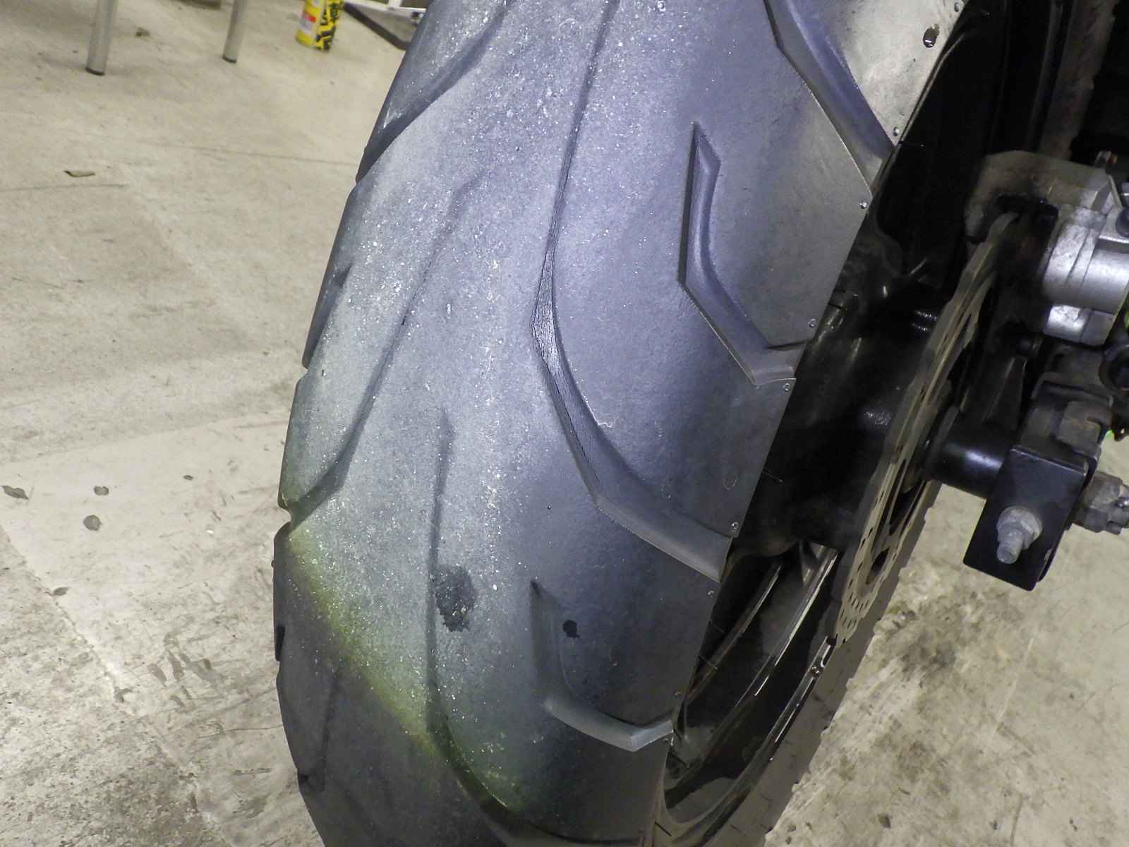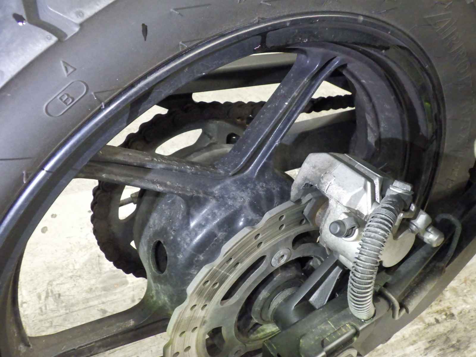 Задняя покрышка: Снижение давления в шине, Трещина требует замены.