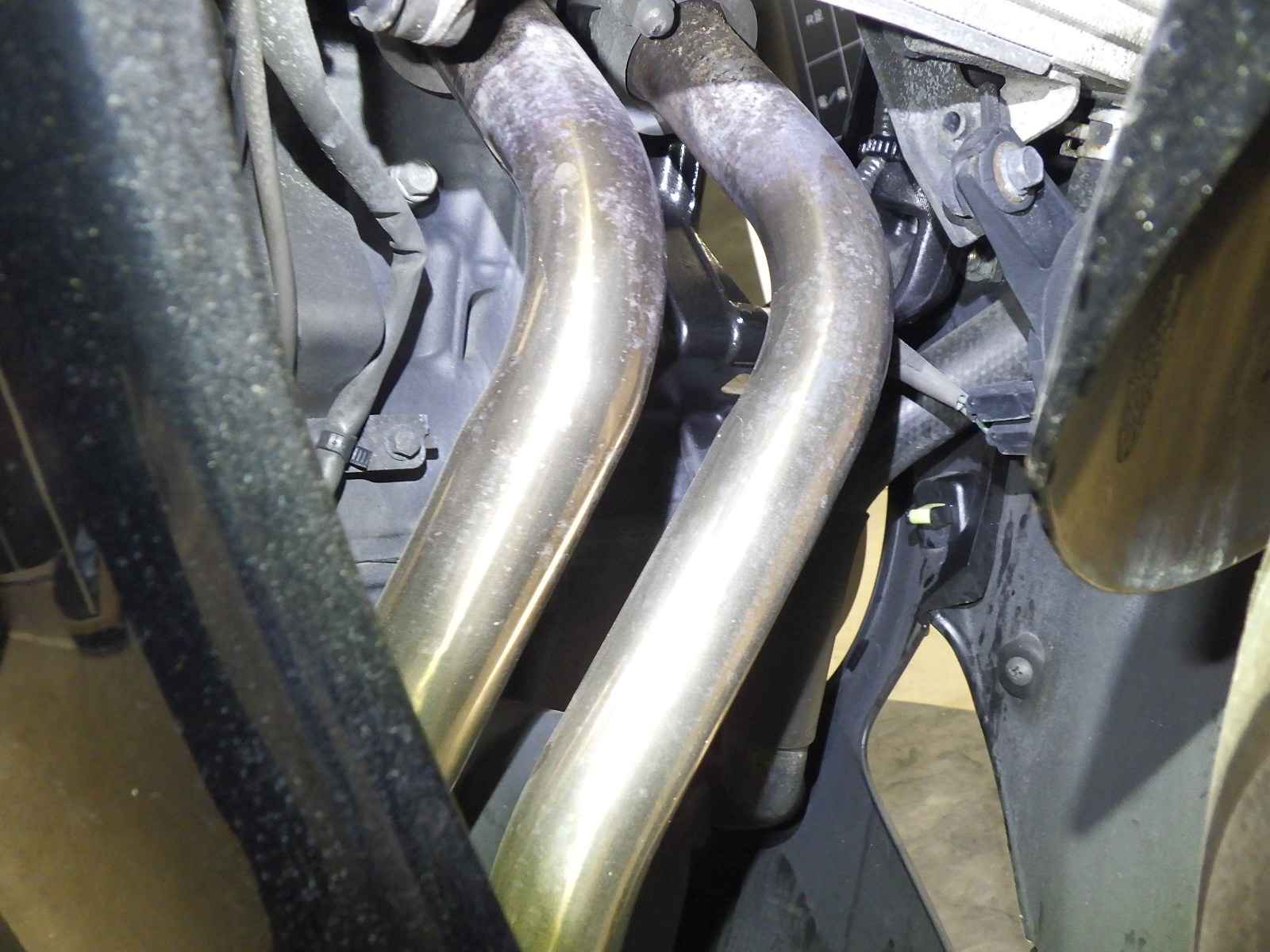 前足回りねじれ。外装変色。カウルズレ。各所キズ、サビ、変色大。